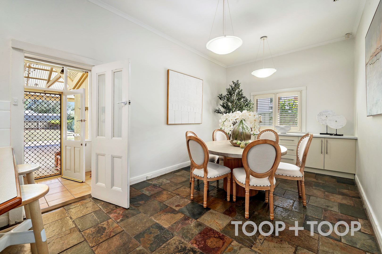 A pretty stone-fronted bungalow built in 1920, this is a home that wears its character with confidence—high ceilings, fireplaces and decorative cornices preserved as part of daily life, not set dressing.