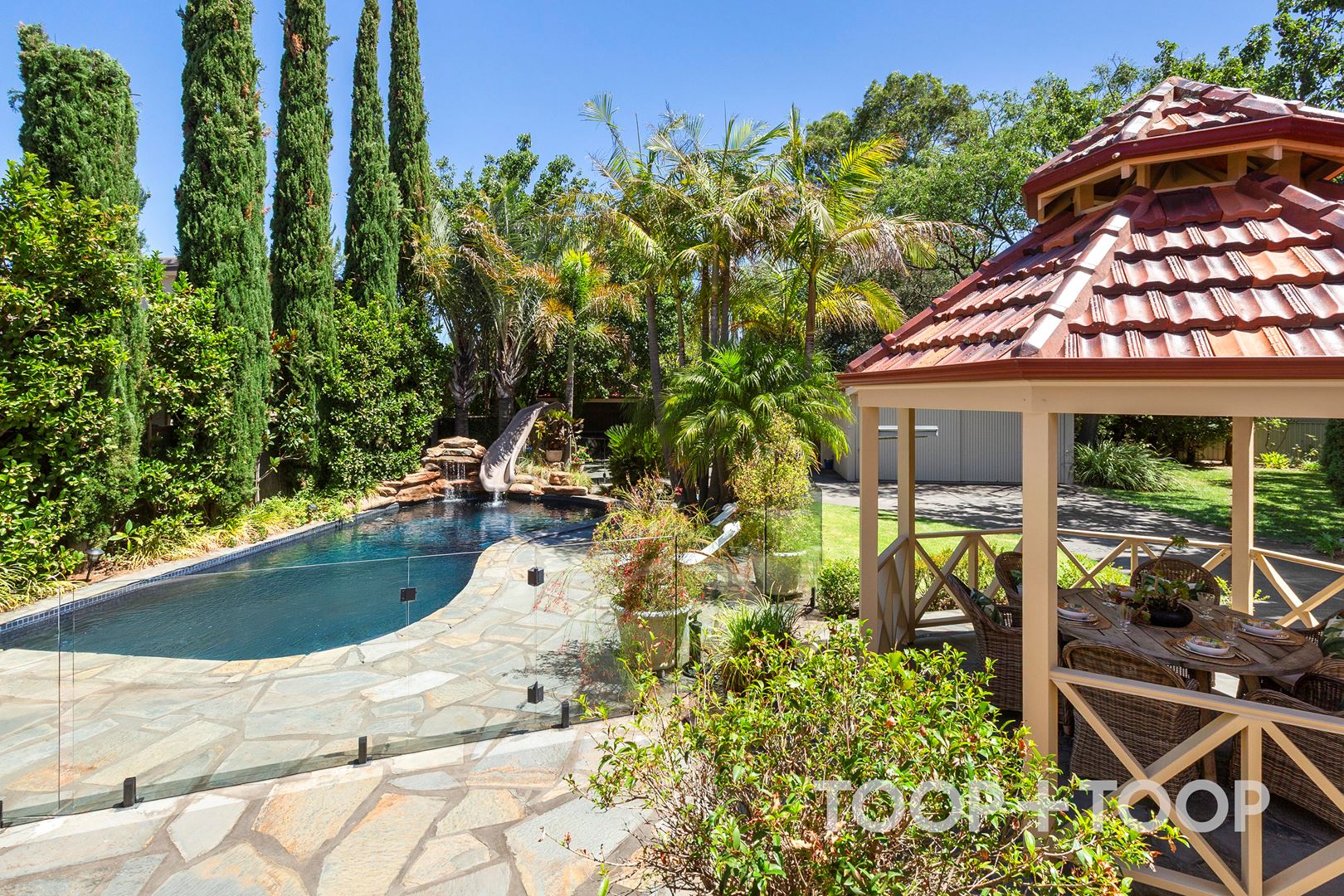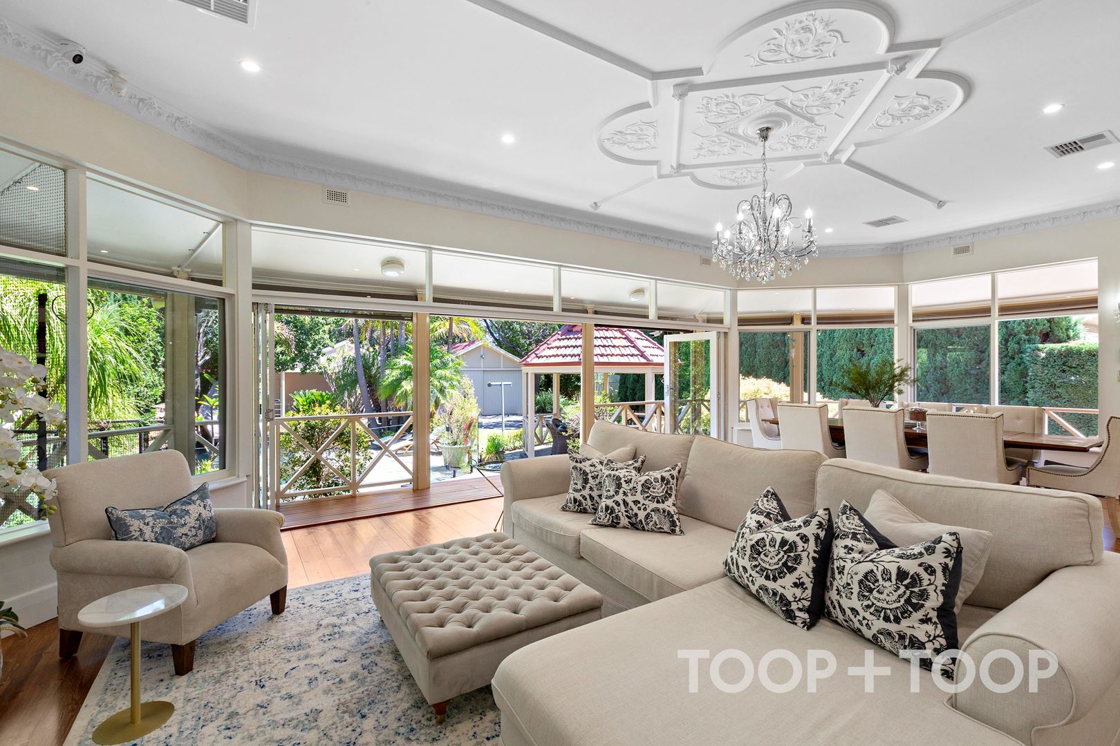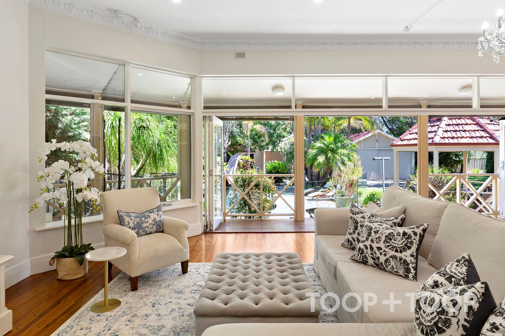 ‘Banyula’ – a figurative and fitting name in Kaurna language meaning “the place of many trees” – perfectly describes this lush estate, where 1,553sqm (approx.) of established, palm-fringed grounds create a private world of beauty, scale and serenity.