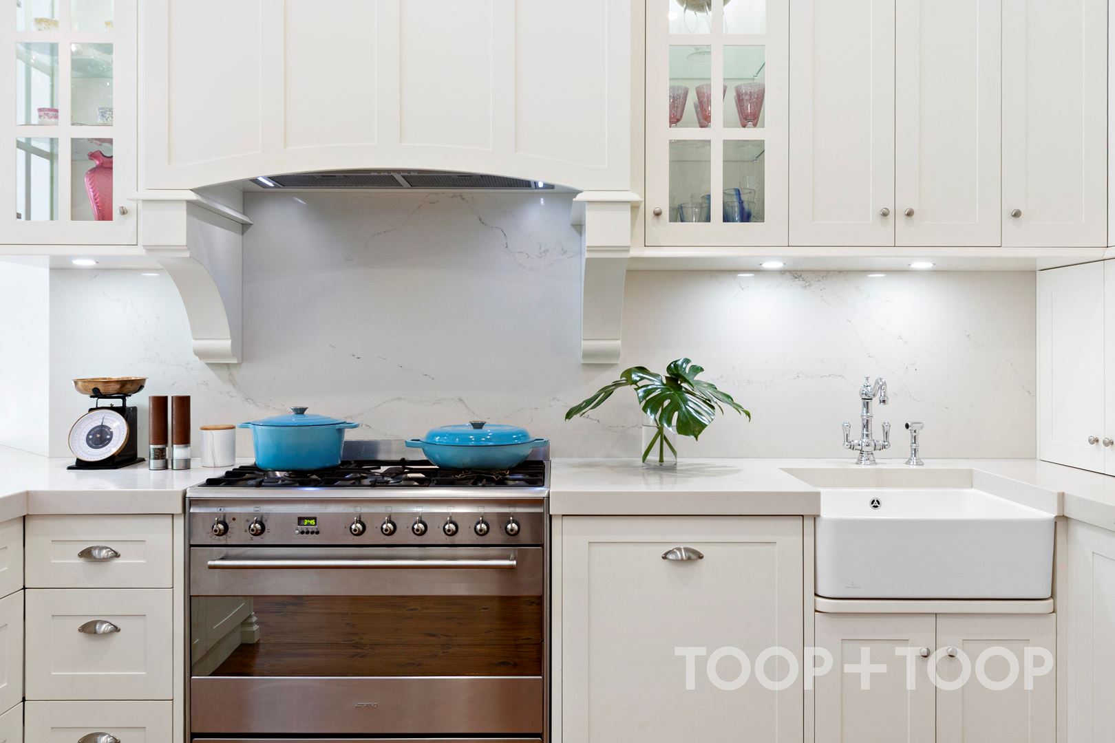 The modern extension, swathed in walls of glass, draws the resort-style gardens into daily view, while an Alby Turner stone-topped kitchen anchors the open-plan domain, unfolding seamlessly from dining to expansive alfresco terraces - transforming entertaining from obligation into enjoyable occasions.