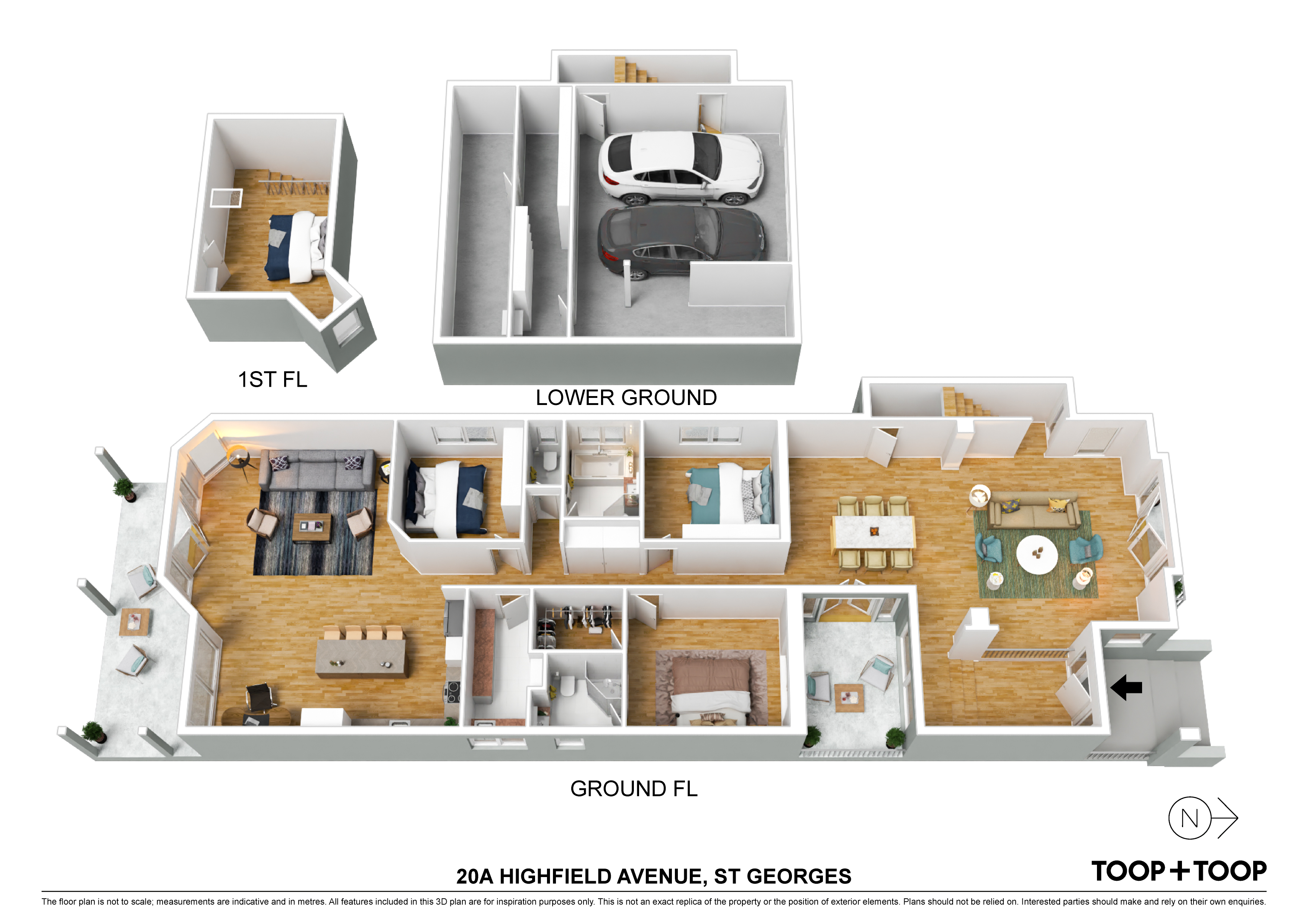 Accommodation is thoughtfully arranged. The master suite is a private retreat with walk-in robe and a deluxe ensuite featuring a vanity with stone top, illuminated mirror and floor-to-ceiling wall tiles. Bedrooms two and three are of generous size and provide built-in robes. They are serviced by a beautifully finished main bathroom also in same standard which showcases a deep-soaker bath where you can relax after a long day at work, a stylish vanity unit also with stone top, floor-to-ceiling tiles plus an illuminated mirror with Bluetooth so you play your favourite music whilst in relaxing mode. A flight of stairs leads you to a loft-style space which adapts to your needs as a spacious fourth bedroom which would be ideal for a teenager, a personal studio or even an inspiring home office, all complete with a reverse cycle split-system air conditioner. There is also additional roof storage.