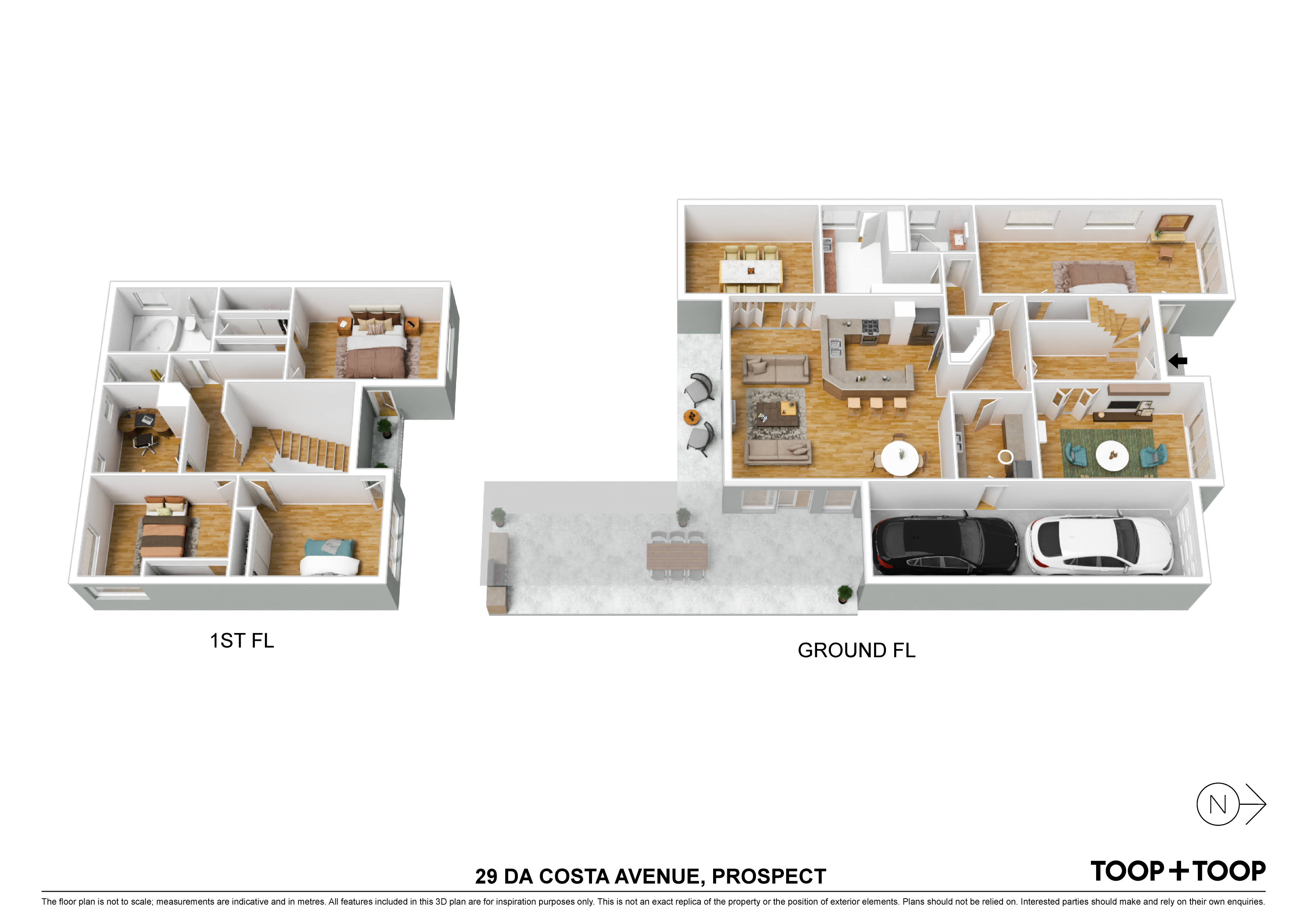 The ground floor features a large master suite, with walk-in robe, plus an option for a second master bedroom upstairs - complete with a walk-in robe, ensuite access, and balcony access, capturing the serene north-facing light. The spacious living areas seamlessly connect, making them perfect for hosting gatherings or enjoying quiet family moments. Dual kitchens, each equipped with gas cooktops, provide versatile culinary spaces to inspire the chef in you.
