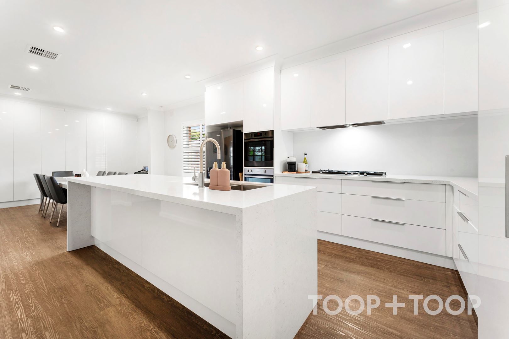 As you step inside, the living area greets you with warmth, perfectly complementing a stylish, contemporary kitchen. Beautifully framed by a stunning stone benchtop and practical walk-in pantry with an abundance of cupboard space. This thoughtfully designed space encourages lively gatherings, allowing hosts to interact seamlessly with guests and ensuring every moment is memorable.