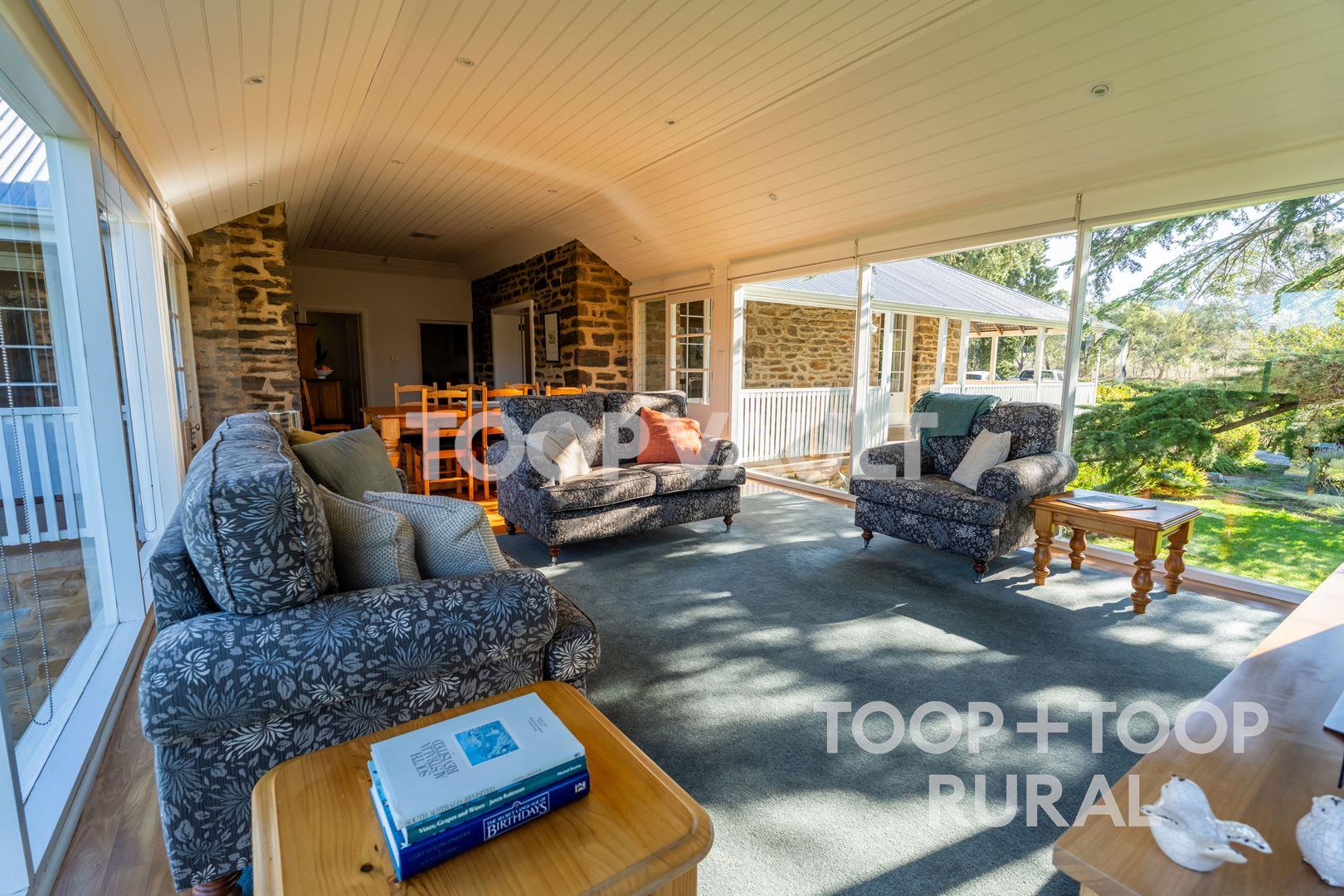 At its heart sits a beautifully preserved stone homestead, rich in character and thoughtfully updated for modern comfort. Wide veranda's, warm timber floors and light-filled interiors create a welcoming atmosphere, while multiple living zones provide flexibility for family living or entertaining.