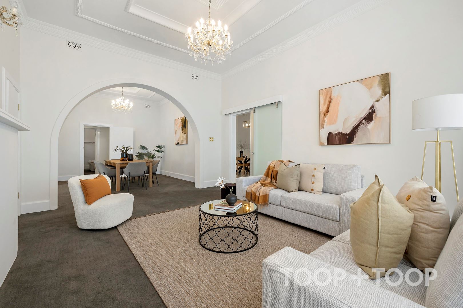 Upon entering, one is welcomed by an ambiance of elegance with a statement entrance, beckoning to high ceilings and ornate detailing that echo throughout the spacious halls and living areas. The interior features a harmonious mix of heritage charm and contemporary finishes, making each room a canvas for personal expression and family comforts. The formal living and dining areas, are bathed in natural light and perfect for entertaining and relaxation.