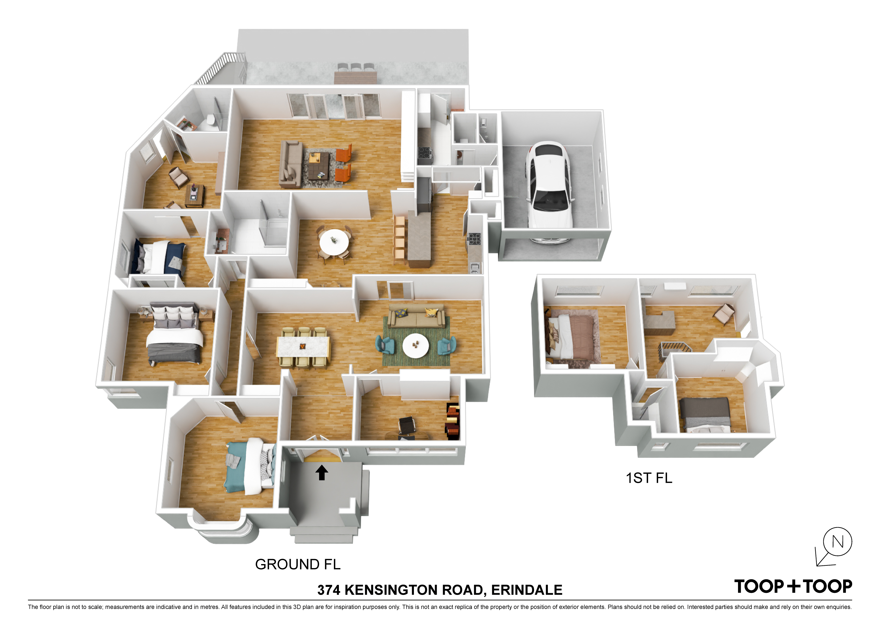 With five bedrooms, this home is an embodiment of space that effortlessly balances communal and private areas ideal for multi-generational living.