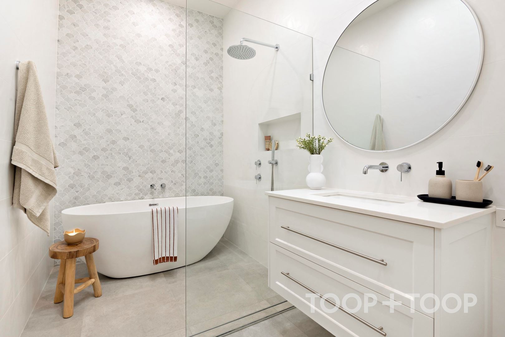 • Main bathroom with freestanding tub and feature mosaic tiling