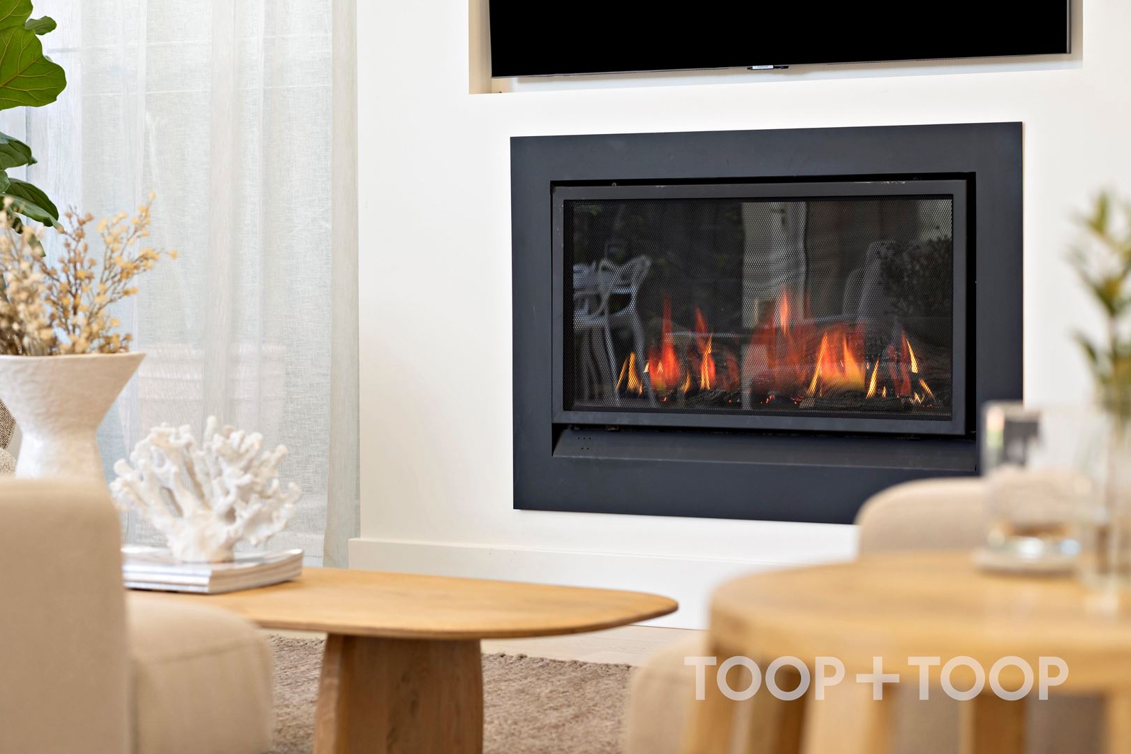 • Light-filled open-plan living with gas fireplace and double-glazed bifolds