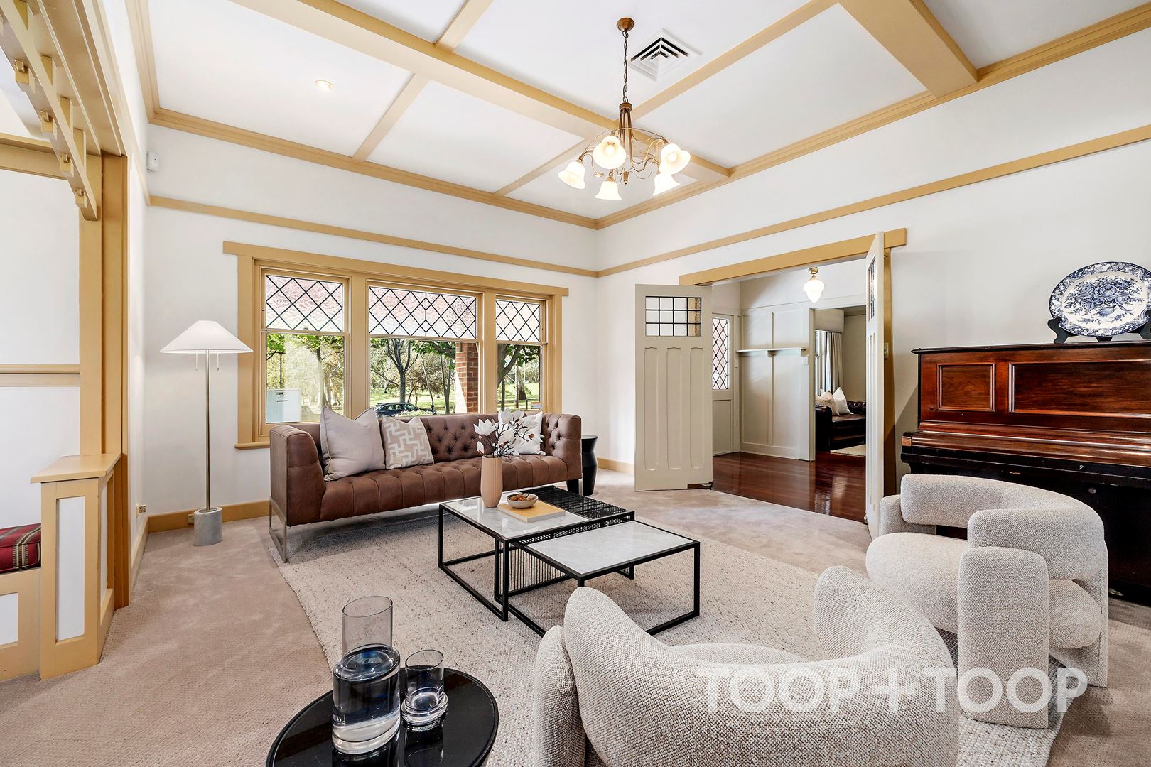 Set beyond a broad, tree-lined frontage, the home makes an immediate impression with its grand, traditional verandah perfect for your morning coffee whilst enjoying the leafy outlook across the park. Inside, a wide entrance hall establishes the home’s grandeur, leading directly to the front living spaces. Timber floors, soaring 3m ceilings and original fireplaces speak to the residence’s character, while a thoughtful floorplan ensures effortless flow between formal and informal zones.