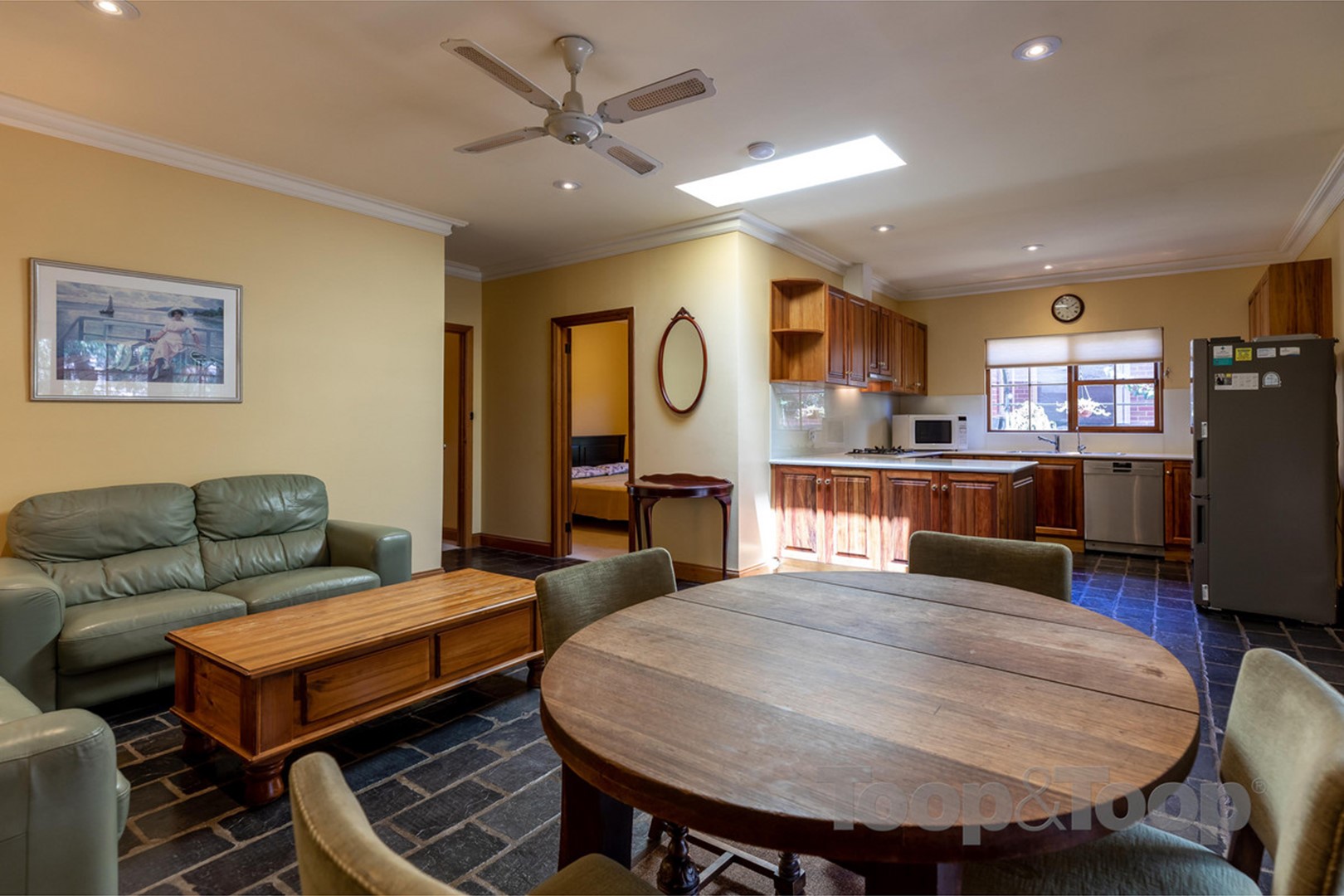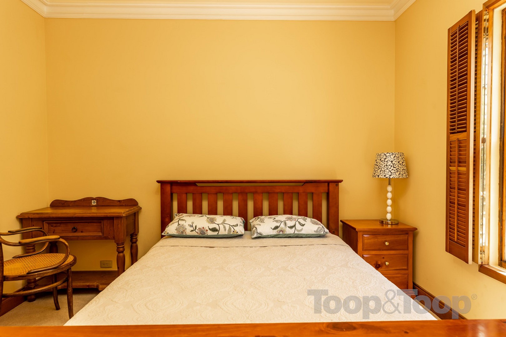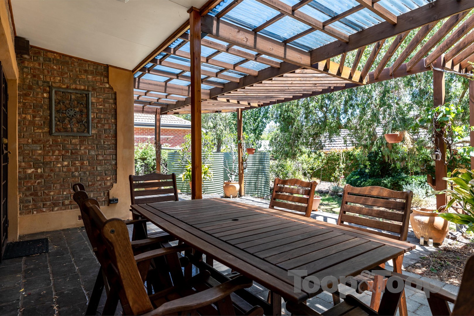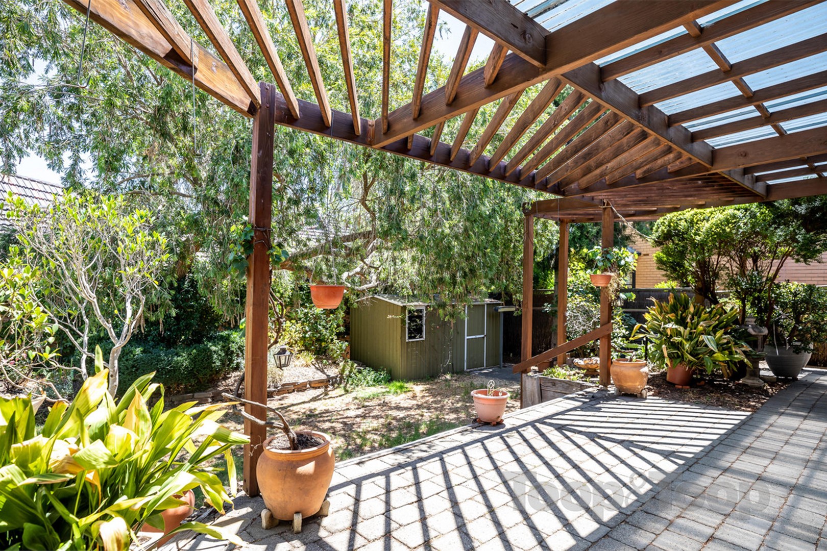 Featuring: * A character tiled entrance with colourful leadlight and arched hallway * 3 double bedrooms with the master featuring built-in robes * Modern 2-way bathroom. * Spacious separate living room features an ornamental open fireplace with ornate mirrored mantel and shuttered window treatments. * At the rear of the property is the quality modern kitchen with stone benchtops, Blackwood cupboards and glass splashbacks plus stainless steel appliances including dishwasher and gas cooking * The large breakfast bar overlooks the air-conditioned open plan living and dining area with large picture windows which in turn overlook the rear garden. * A good size laundry with storage includes a second toilet. * Private rear garden featuring a large paved pergola area * Lawn area with garden shed and rainwater tanks and side fernery. * There is a double length carport at the side of the house with added pergola area.
