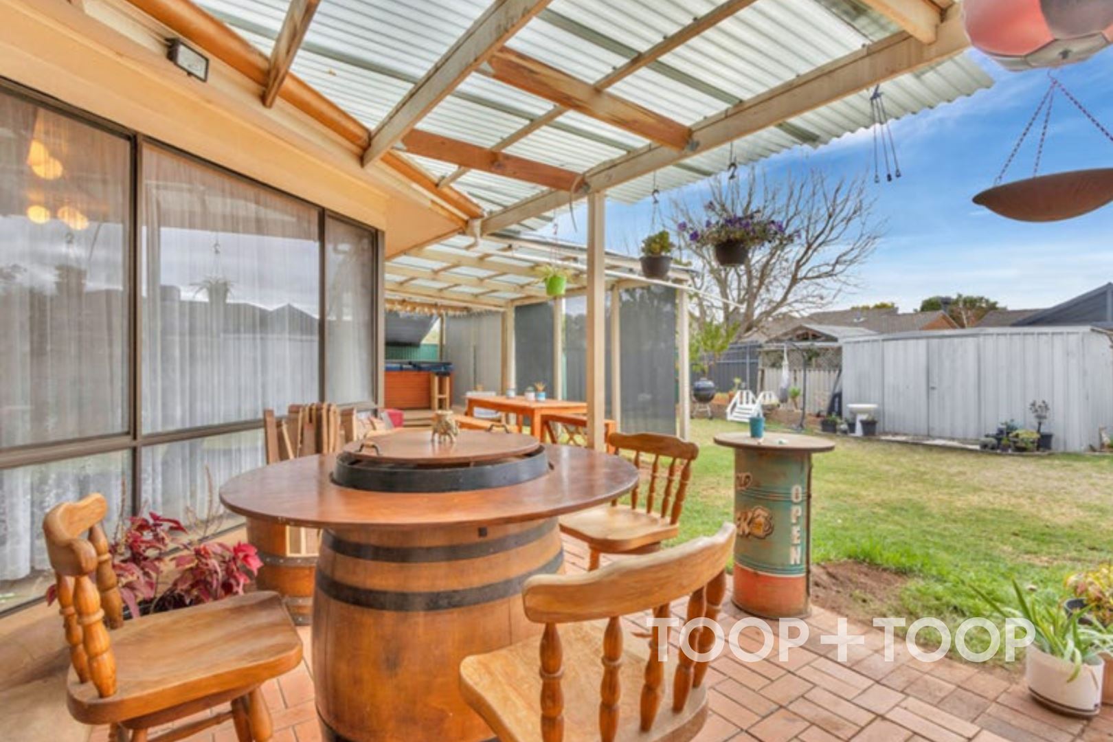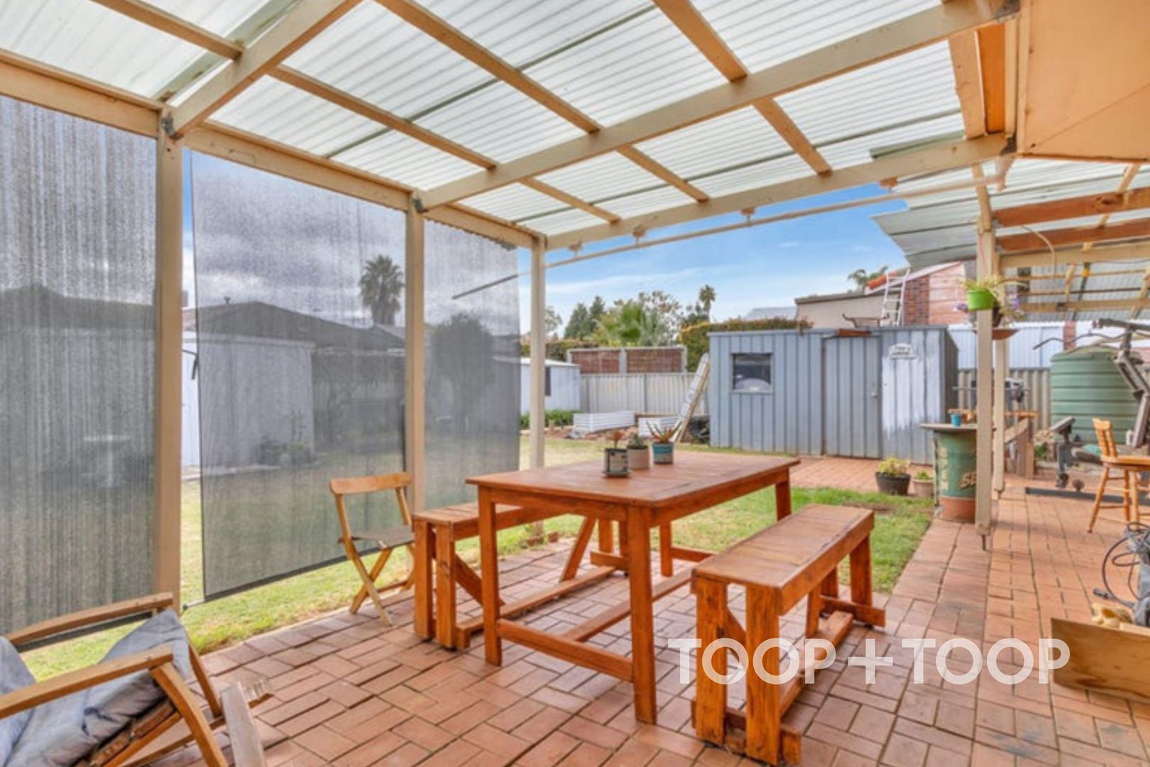 Features: - Modern kitchen with a coffee nook, gas cooktop, and double sink. - Two living areas for comfort and privacy. - Gas heater in the rumpus room. - Generously sized bedrooms with built-in wardrobes. - Ducted evaporative and gas heating/cooling. - Two bathrooms for added convenience. - Instant hot water with two gas water heaters. - Undercover decked outdoor area for entertaining. - Garden shed with concrete flooring and two additional sheds with brick flooring. - Easy-to-maintain garden beds and lawn. - Low-maintenance front garden with great street appeal. - Carport for secure off-street parking, boat, caravan, or trailer storage.
