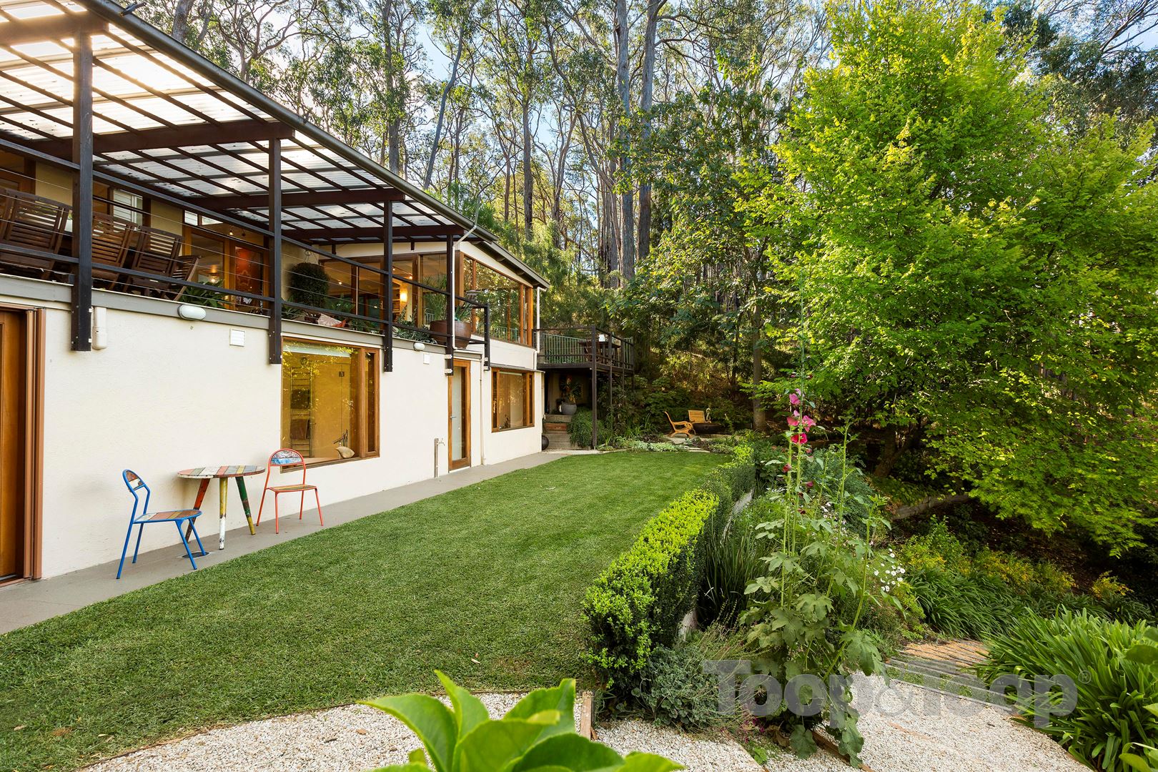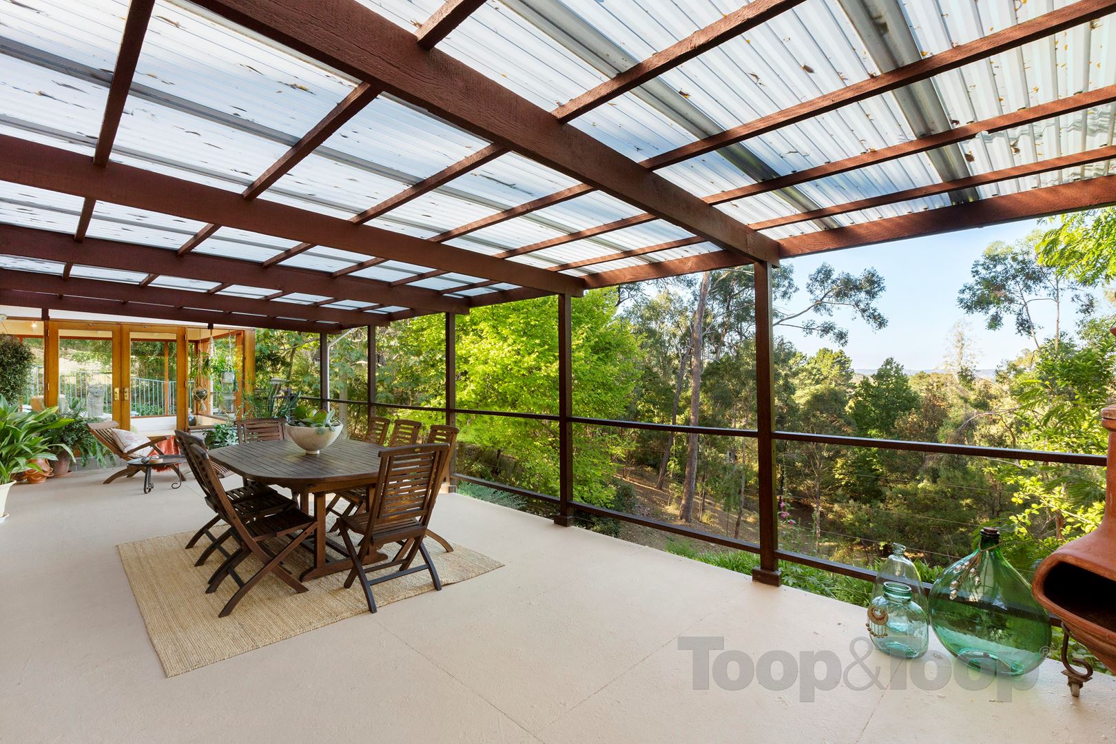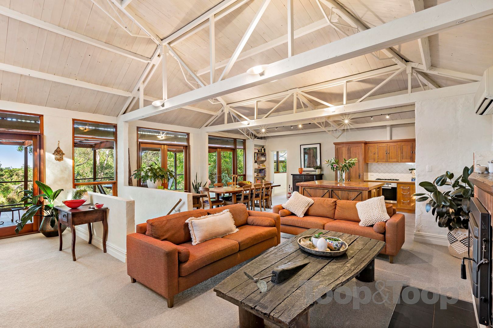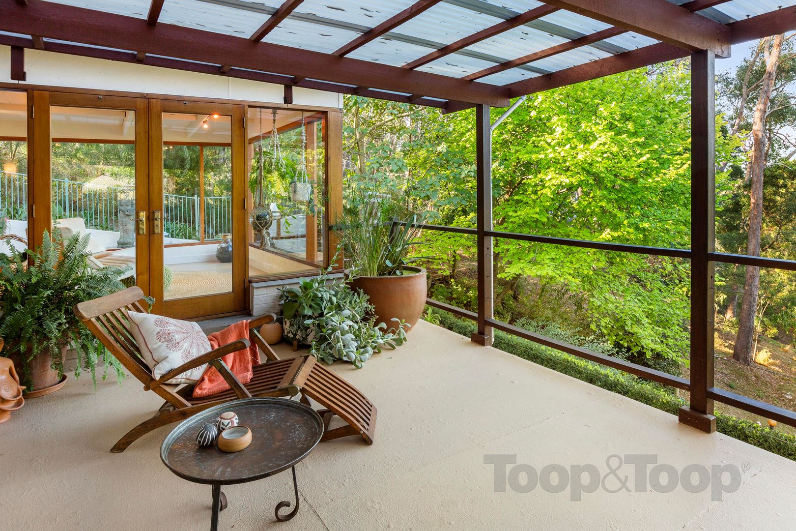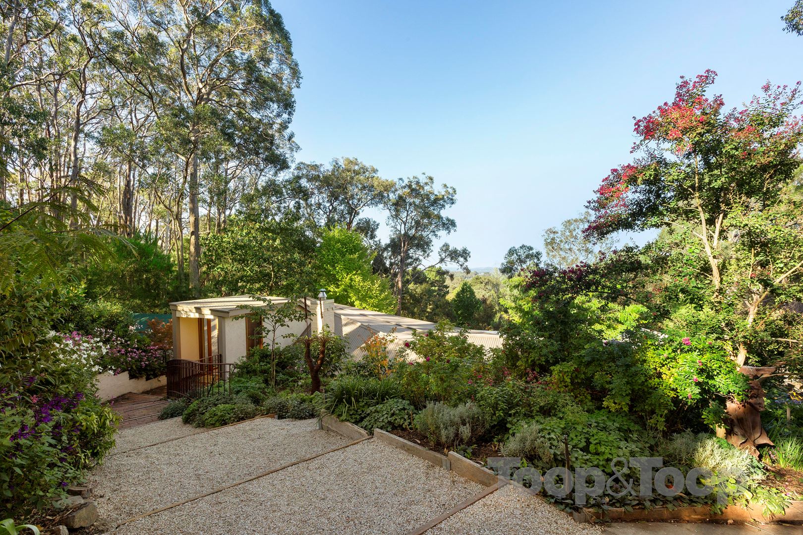 Step inside this stunning home and be wowed by the architectural style and distant valley view framed by beautiful picture windows. A serene oasis with a private and secluded aspect and an elevation which makes the most of the vista over the garden, into the treetops and beyond. An interesting floor plan allowing for two fabulous living spaces and master bedroom suite upstairs - while downstairs there are two good sized bedrooms, laundry, cellar and luxurious family bathroom with sumptuous granite, free-standing tub perfectly positioned to take in the view whilst you soak. A wonderful home in which to entertain, the heart of the home is a centrally located main living space. The beautiful timber kitchen with rustic island bench and combustion fire nearby, evoke an earthy and warm ambiance, the perfect place to sit and enjoy a glass of wine. Alternatively there three sets of timber French doors opening out onto the expansive main deck where you can entertain during the warmer months. The second living area is just as impressive with a beautiful space from which to perhaps read a book or sit and take in the amazing view through a huge, feature window. The main deck is also accessed from this room through another set of French doors. Double glass sliding doors allow for a seamless flow-through to the in-ground pool and pool-deck and this private, sheltered space enjoys a view directly into the pretty Golden Elm tree and over the garden. The master suite upstairs is complete with walk-in robe and ensuite and private courtyard outlook. Bedrooms two and three have lovely garden views and bedroom two has French doors to the garden. Downstairs the laundry is well set up with convenient direct access outside and the cellar is perfectly positioned for the wine collection! The garage/workshop is accessed via a sealed driveway and there is further covered parking for two cars. A generous allotment with rambling gardens, fruit trees, a flat lawn area and some extra space further afield for chooks or animals or just to enjoy. Plenty of off-street parking and a fantastic location in leafy Aldgate and a short walk to Stirling East Primary School. Quick access to the CBD via the freeway and to public transport routes. Make it yours!