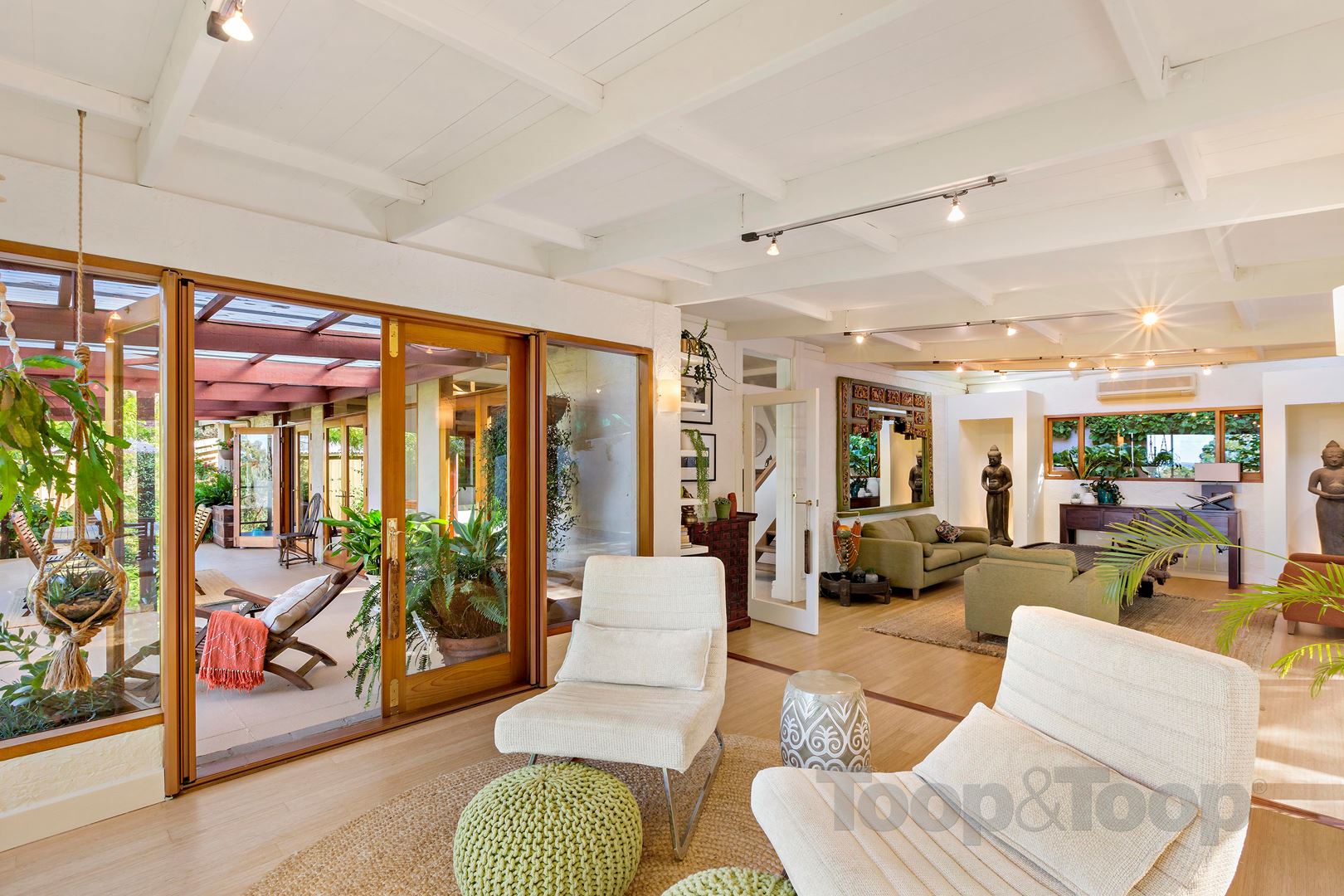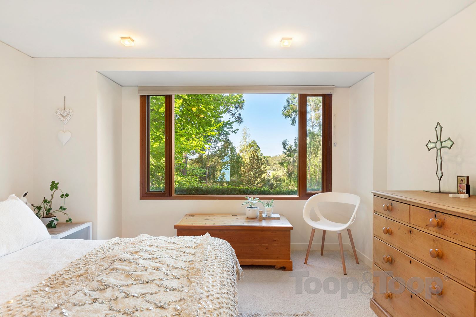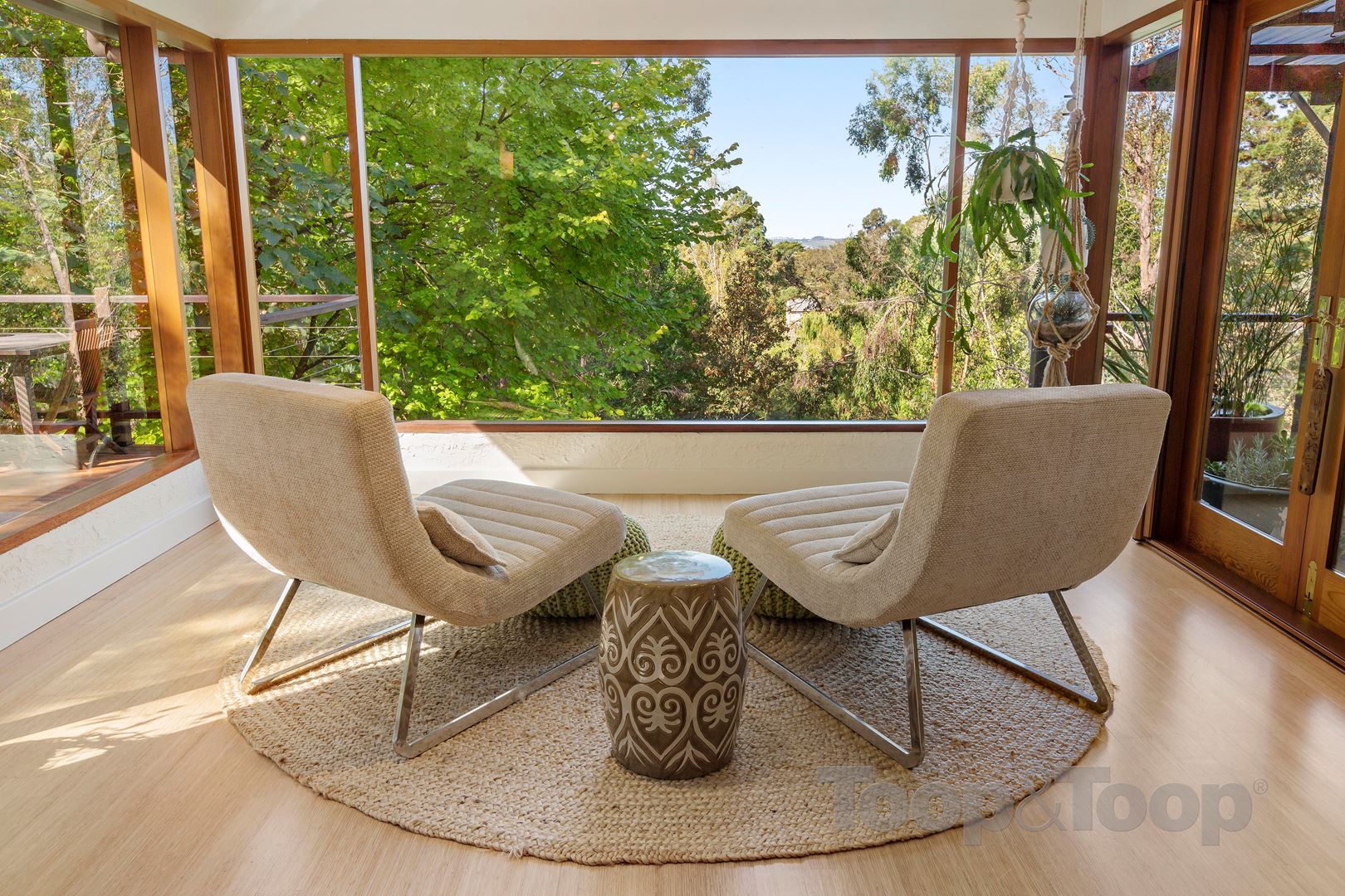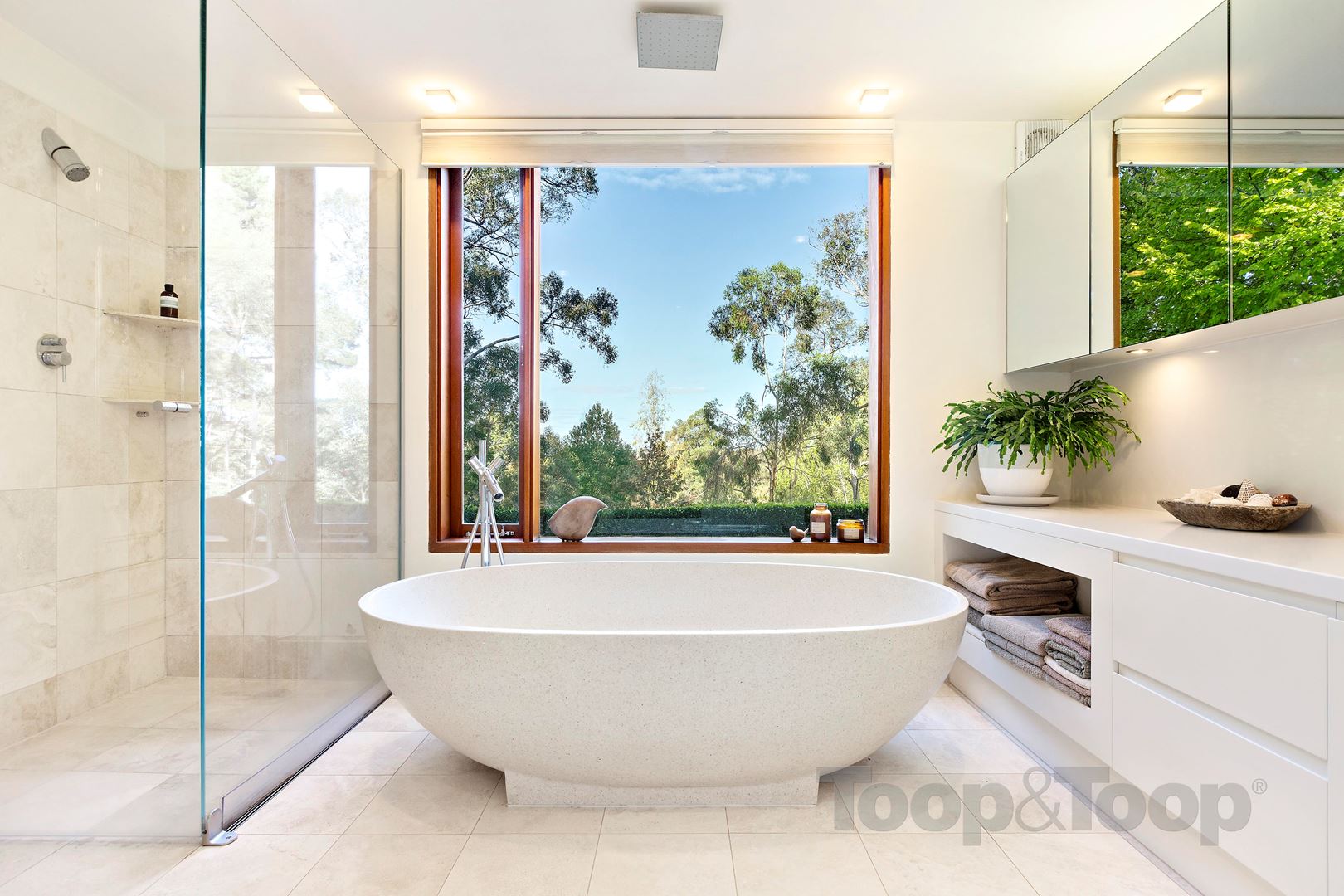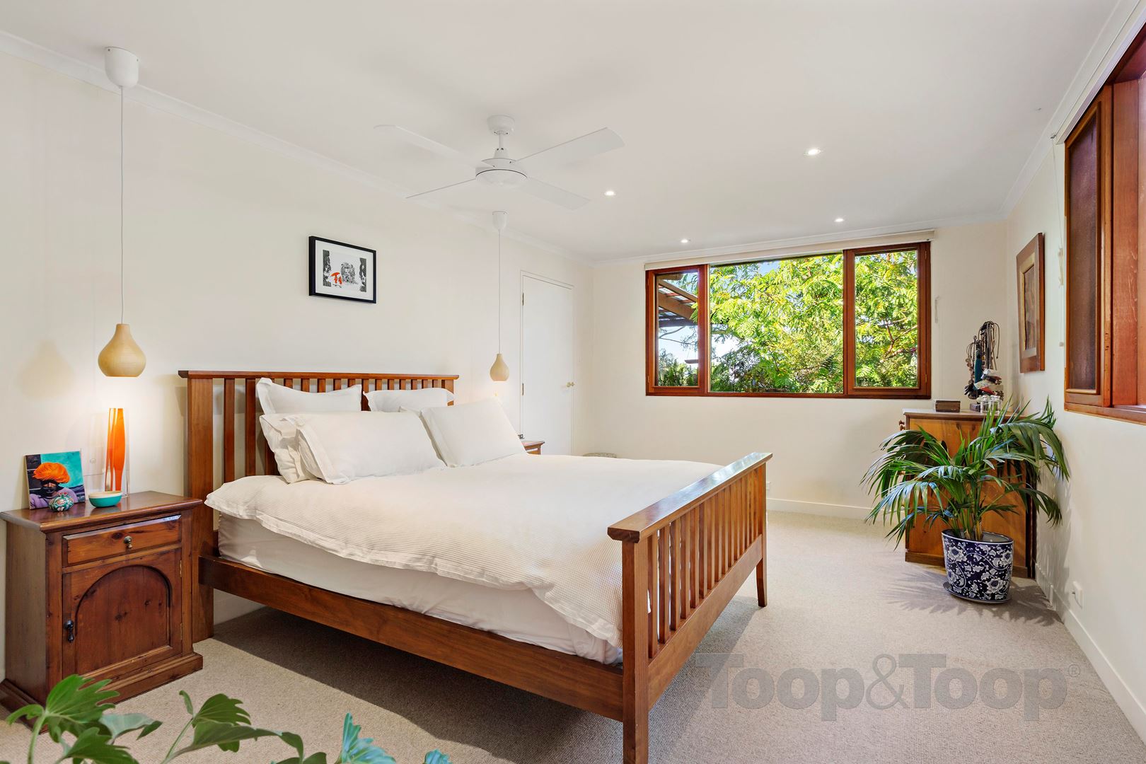 Step inside this stunning home and be wowed by the architectural style and distant valley view framed by beautiful picture windows. A serene oasis with a private and secluded aspect and an elevation which makes the most of the vista over the garden, into the treetops and beyond. An interesting floor plan allowing for two fabulous living spaces and master bedroom suite upstairs - while downstairs there are two good sized bedrooms, laundry, cellar and luxurious family bathroom with sumptuous granite, free-standing tub perfectly positioned to take in the view whilst you soak. A wonderful home in which to entertain, the heart of the home is a centrally located main living space. The beautiful timber kitchen with rustic island bench and combustion fire nearby, evoke an earthy and warm ambiance, the perfect place to sit and enjoy a glass of wine. Alternatively there three sets of timber French doors opening out onto the expansive main deck where you can entertain during the warmer months. The second living area is just as impressive with a beautiful space from which to perhaps read a book or sit and take in the amazing view through a huge, feature window. The main deck is also accessed from this room through another set of French doors. Double glass sliding doors allow for a seamless flow-through to the in-ground pool and pool-deck and this private, sheltered space enjoys a view directly into the pretty Golden Elm tree and over the garden. The master suite upstairs is complete with walk-in robe and ensuite and private courtyard outlook. Bedrooms two and three have lovely garden views and bedroom two has French doors to the garden. Downstairs the laundry is well set up with convenient direct access outside and the cellar is perfectly positioned for the wine collection! The garage/workshop is accessed via a sealed driveway and there is further covered parking for two cars. A generous allotment with rambling gardens, fruit trees, a flat lawn area and some extra space further afield for chooks or animals or just to enjoy. Plenty of off-street parking and a fantastic location in leafy Aldgate and a short walk to Stirling East Primary School. Quick access to the CBD via the freeway and to public transport routes. Make it yours!