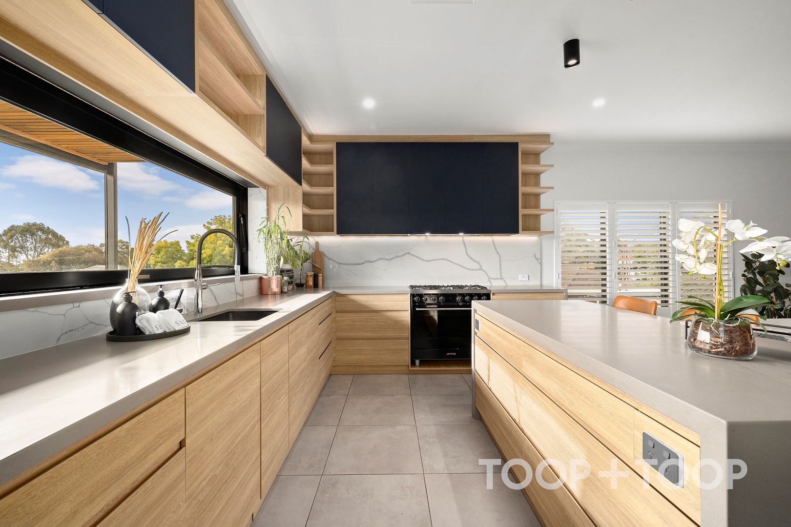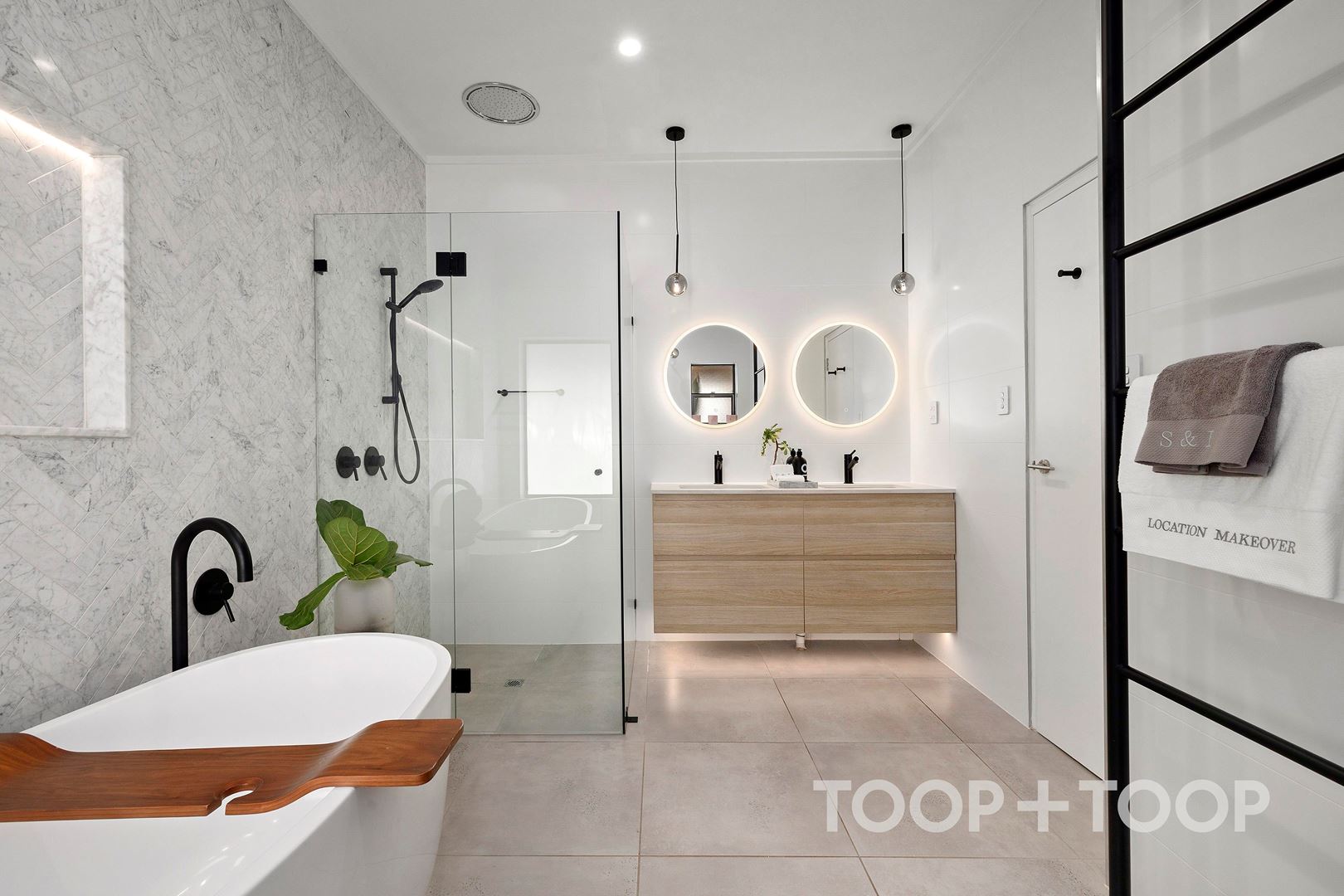 The large master suite is a private sanctuary, complete with a full-size ensuite, dressing room, and walk-in robe. The high-end bathrooms are a testament to the attention to detail, complete with heated towel rails, feature lighting, and luxury finishes. Two additional bedrooms feature on the upper level of the home, serviced by the main bathroom.