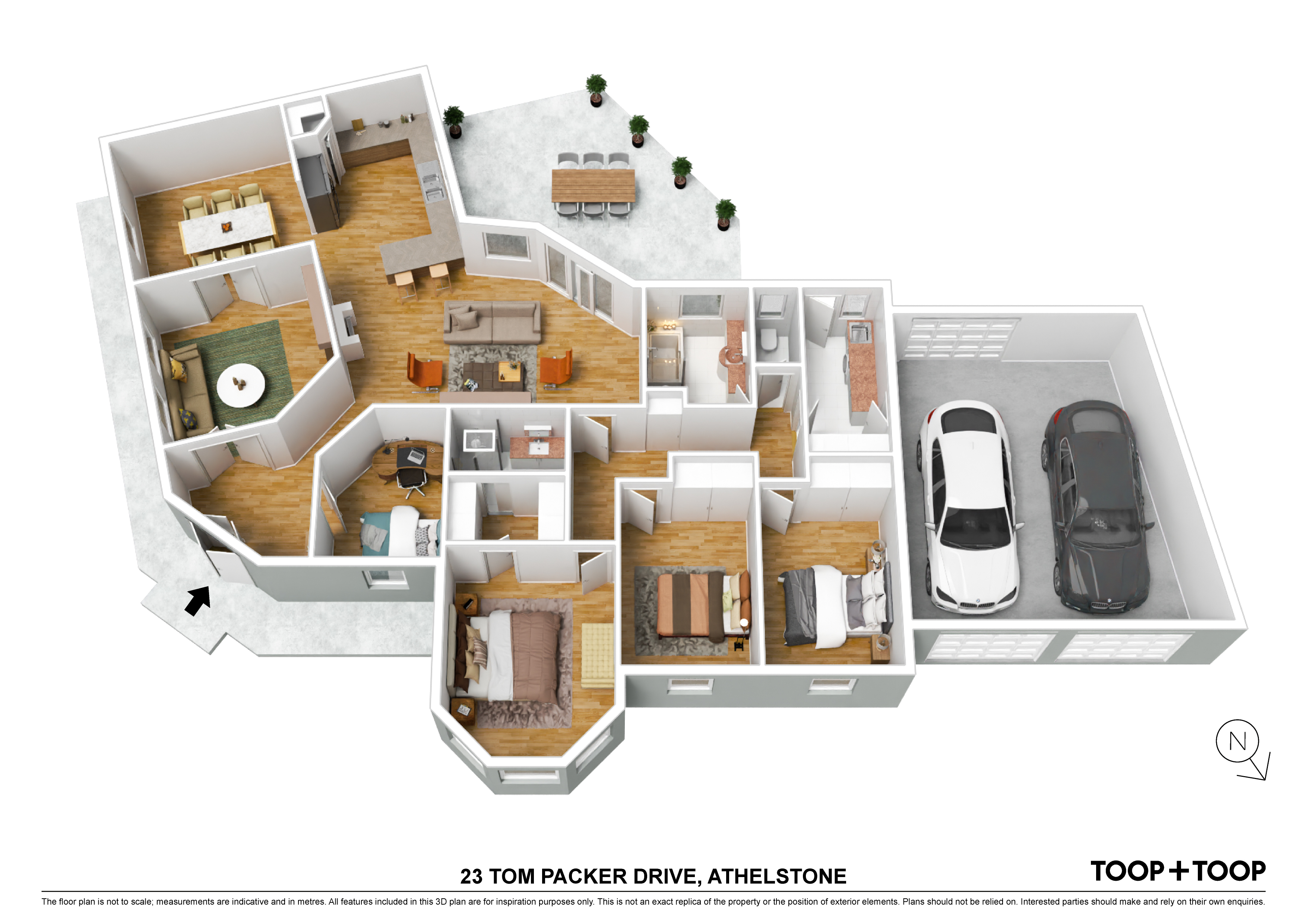 The four light-filled bedrooms are restful retreats, with the master suite featuring a luxurious ensuite and walk-in wardrobe. Two pristine bathrooms, complete with polished fixtures, ensure family convenience.