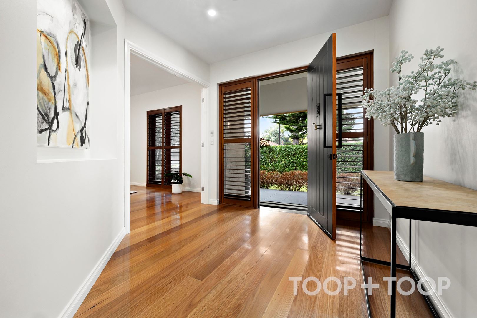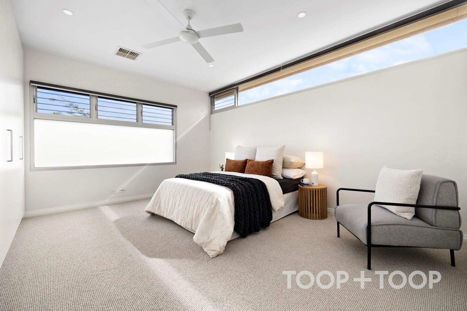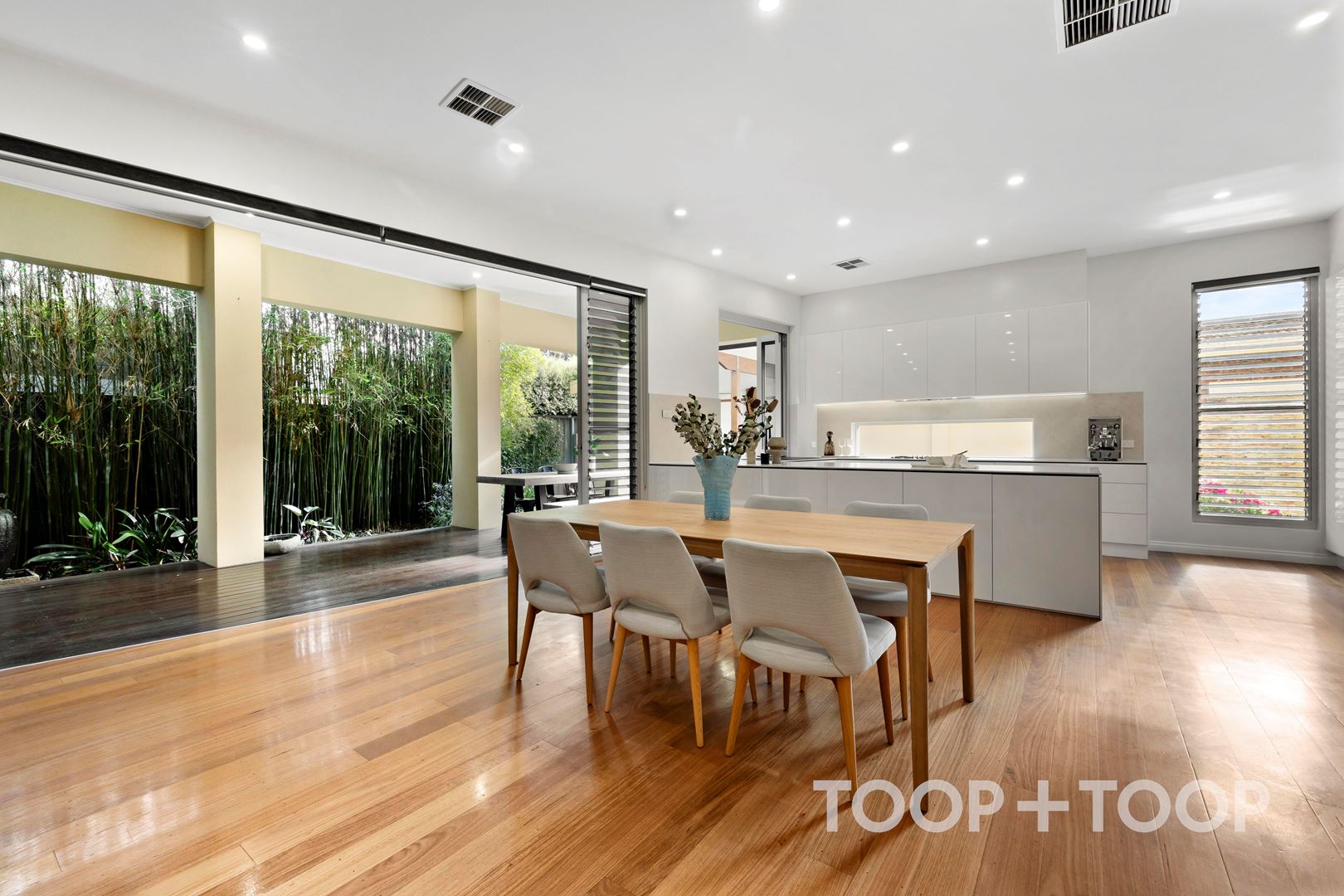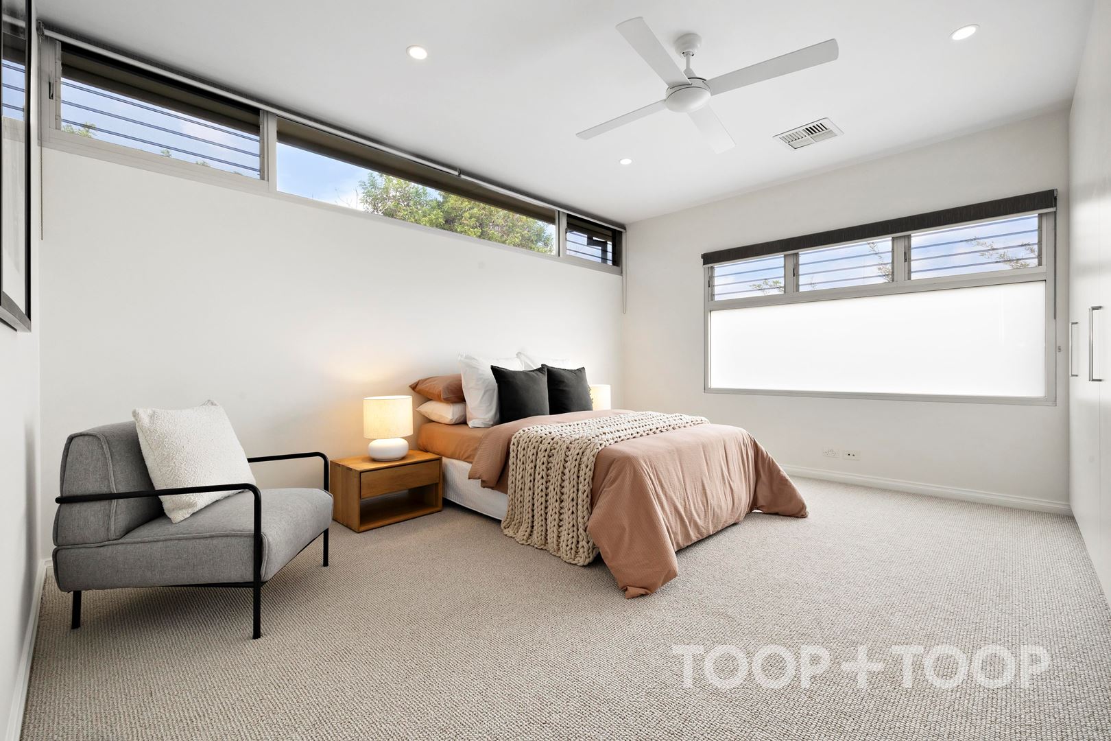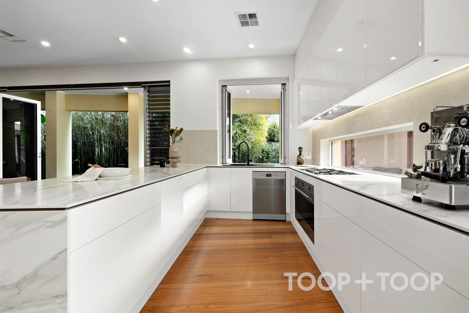 At 25 Jetty Street, Grange, everyday life is shaped by proximity to the water—walking distance to the stunning shoreline of Grange Beach, and equally close to local cafes and eateries. Architecturally designed c.2010 and set on a north-facing 560sqm allotment, this four-bedroom residence is planned around light, comfort, and a strong connection between interior living zones and a deliberately low-maintenance outdoors.