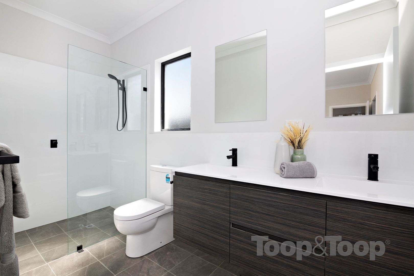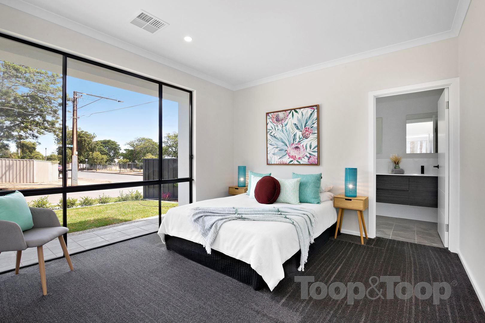 The large light-filled master bedroom suite includes a luxurious ensuite with a super large shower, double vanity and walk-in robe. The other 2 double bedrooms have luxurious carpet & built-in wardrobes