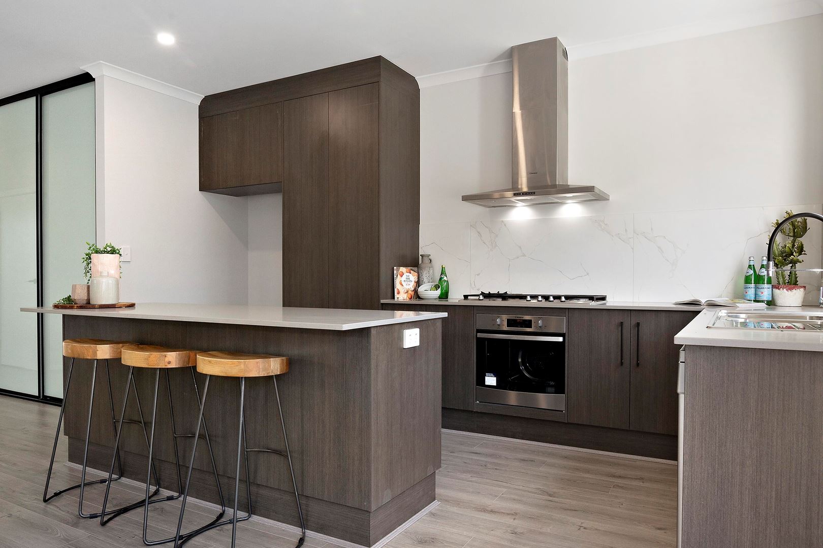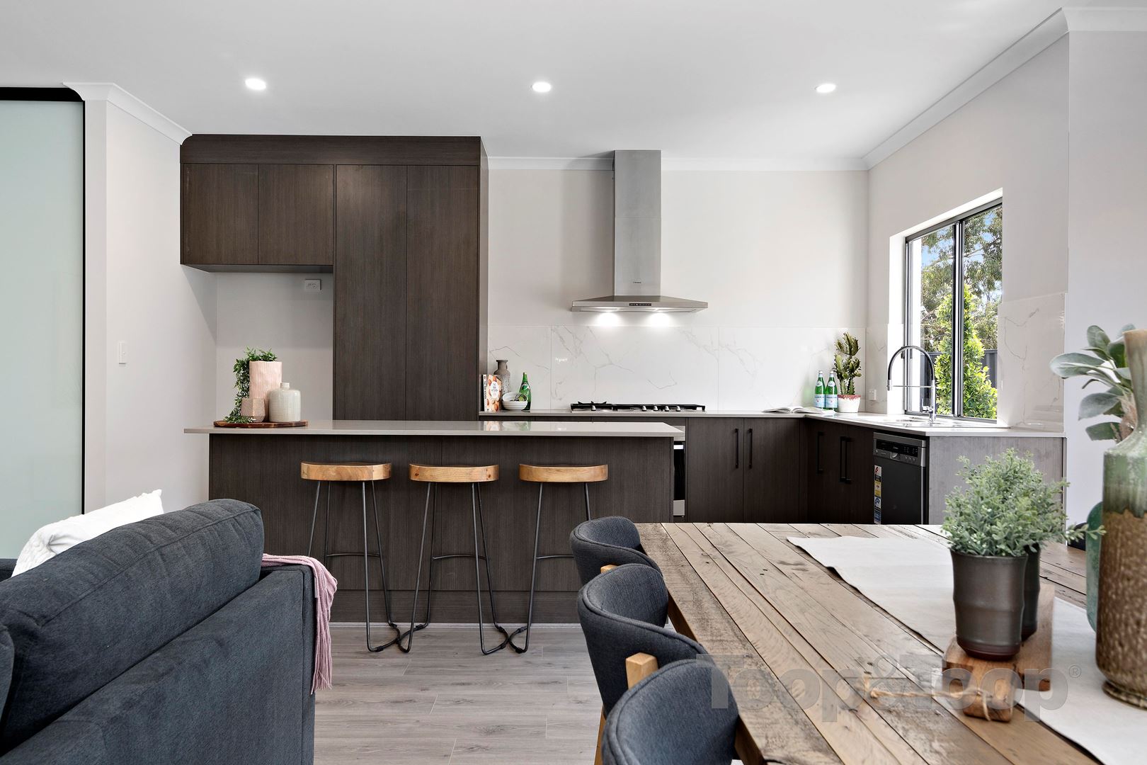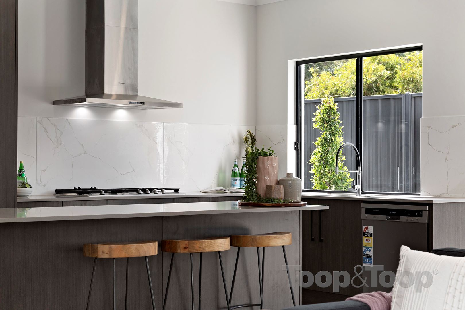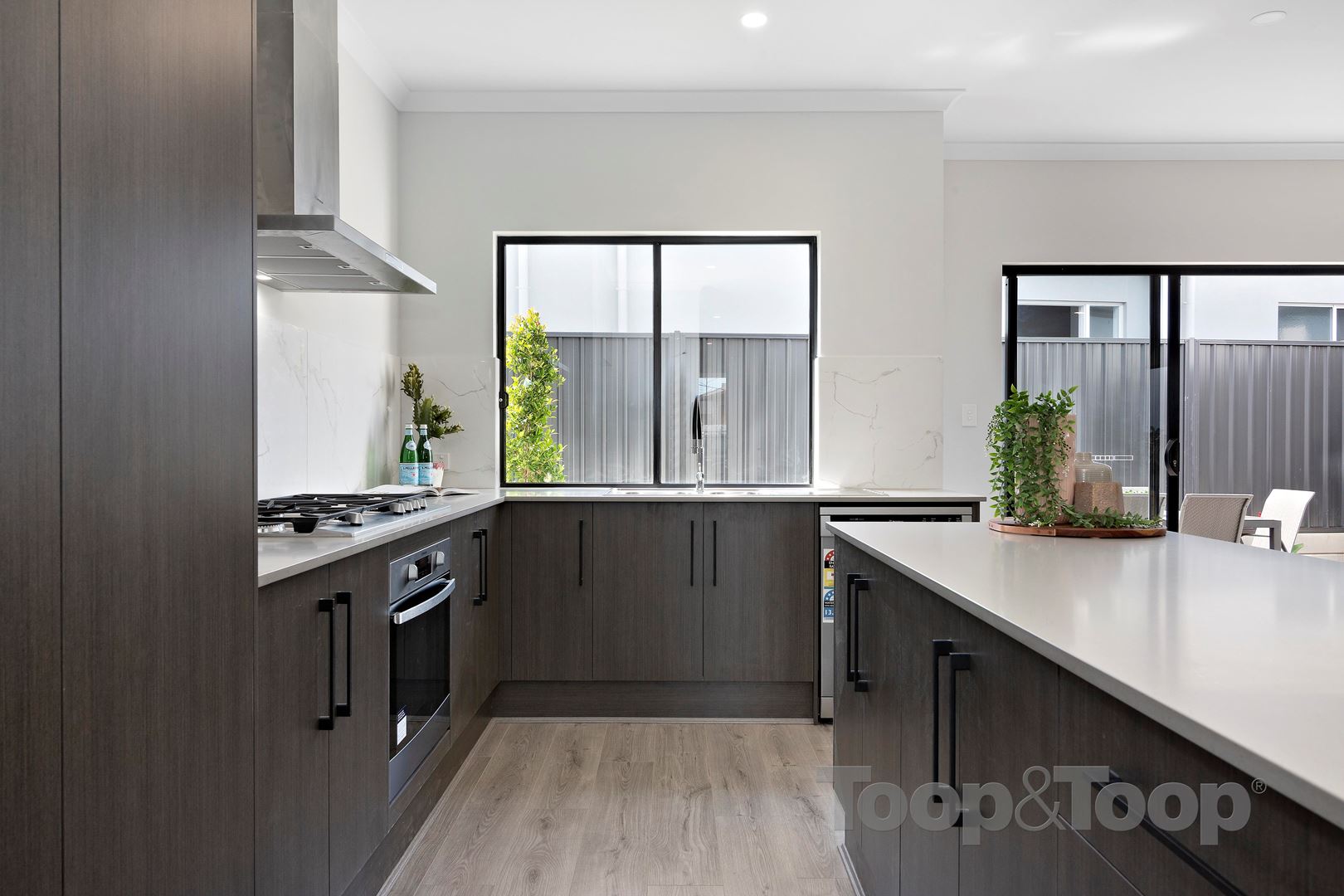 The large open plan family living & dining area leads out to the paved alfresco through double sliding doors. The professionally designed kitchen blends seamlessly with the living dining area and includes stone benchtops, large island bench, double sink & quality Australian Made Westinghouse appliances including stainless steel dishwasher & oven, 900mm gas cooktop & rangehood.