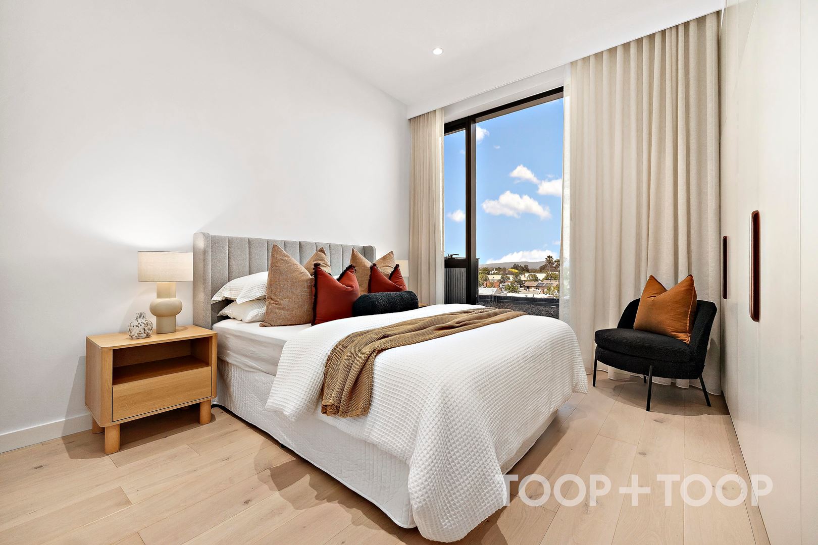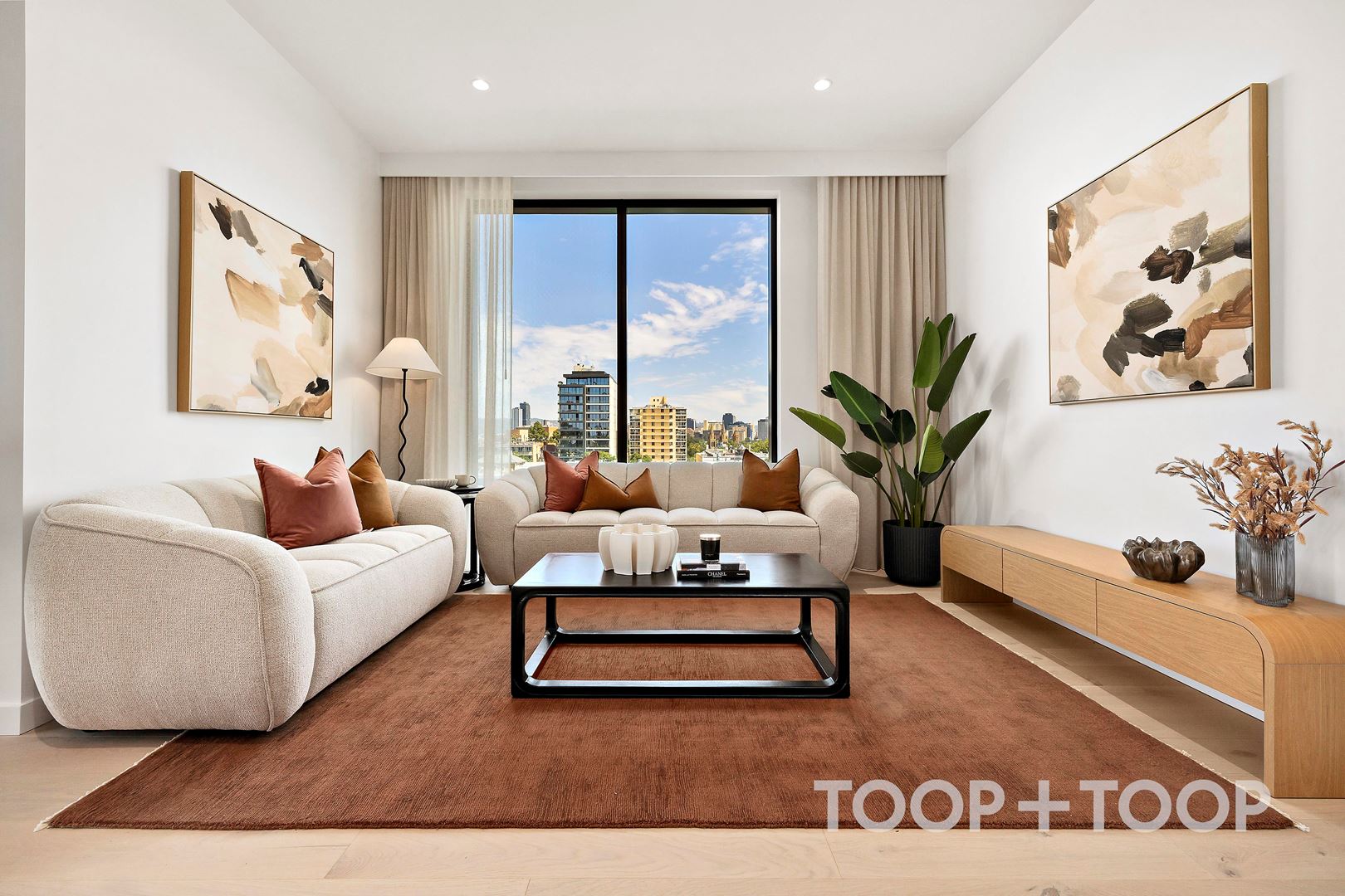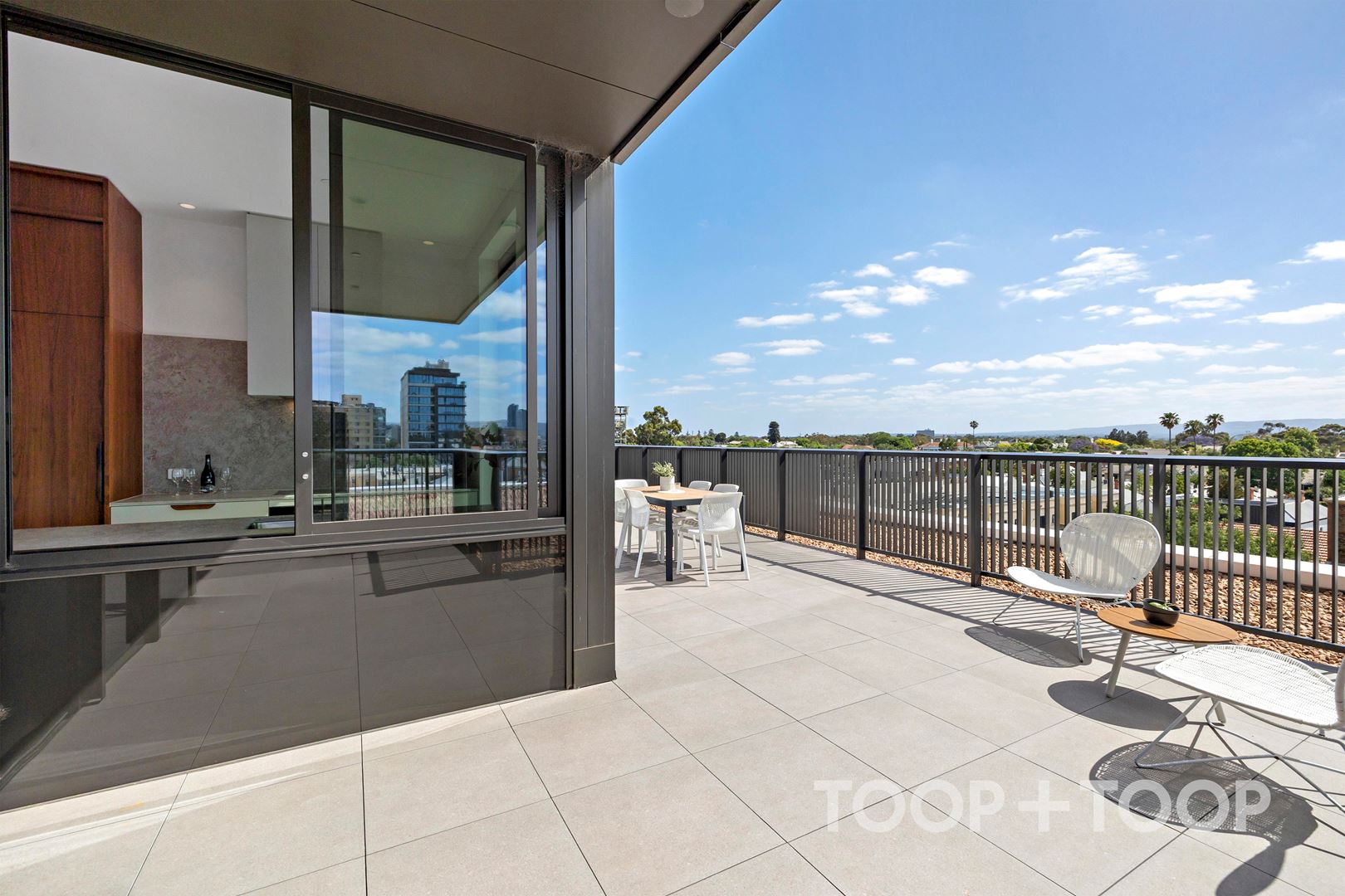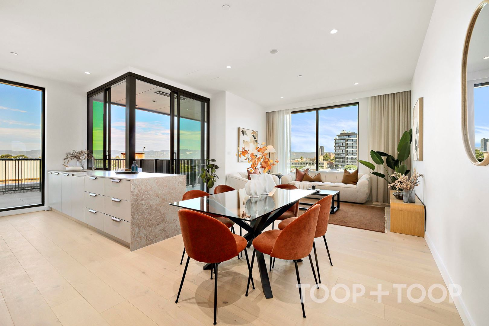 Luxury corner apartment in The Archer Building at 88 O'Connell; Where floor to ceiling picture windows capture the breathtaking full city skyline views, framed by the Adelaide Hills.