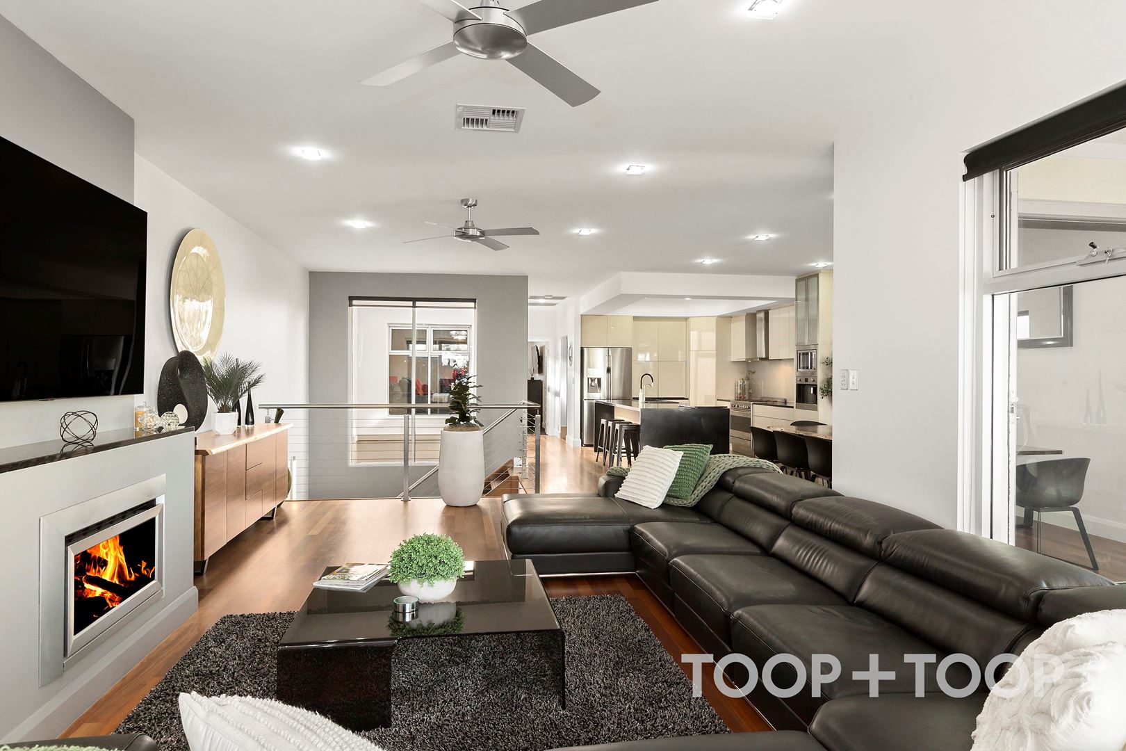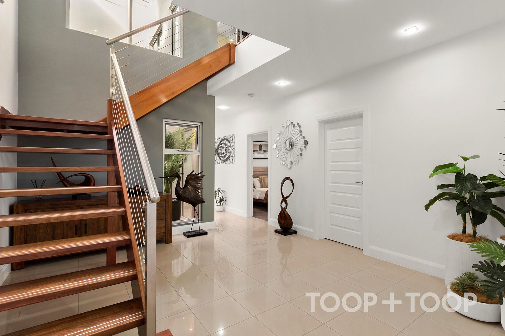 From its robust concrete slab foundation to the rich warmth of Jarrah timber floors, every detail has been carefully considered. A dramatic skylit atrium with remote-controlled Velux roofing creates a striking architectural statement, while the statement staircase and fine timber accents add timeless character.