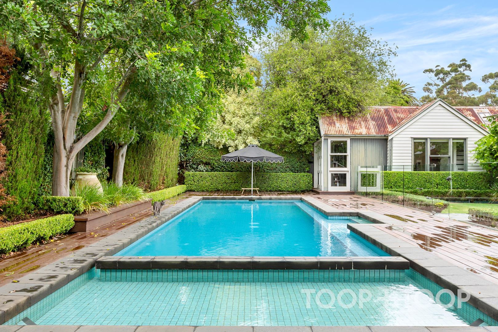 • Fully tiled, solar heated mineral pool with auto-cleaning functionality and separate wading pool