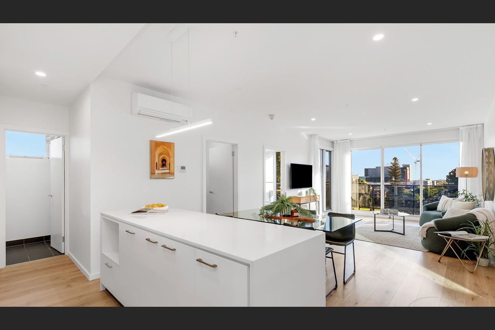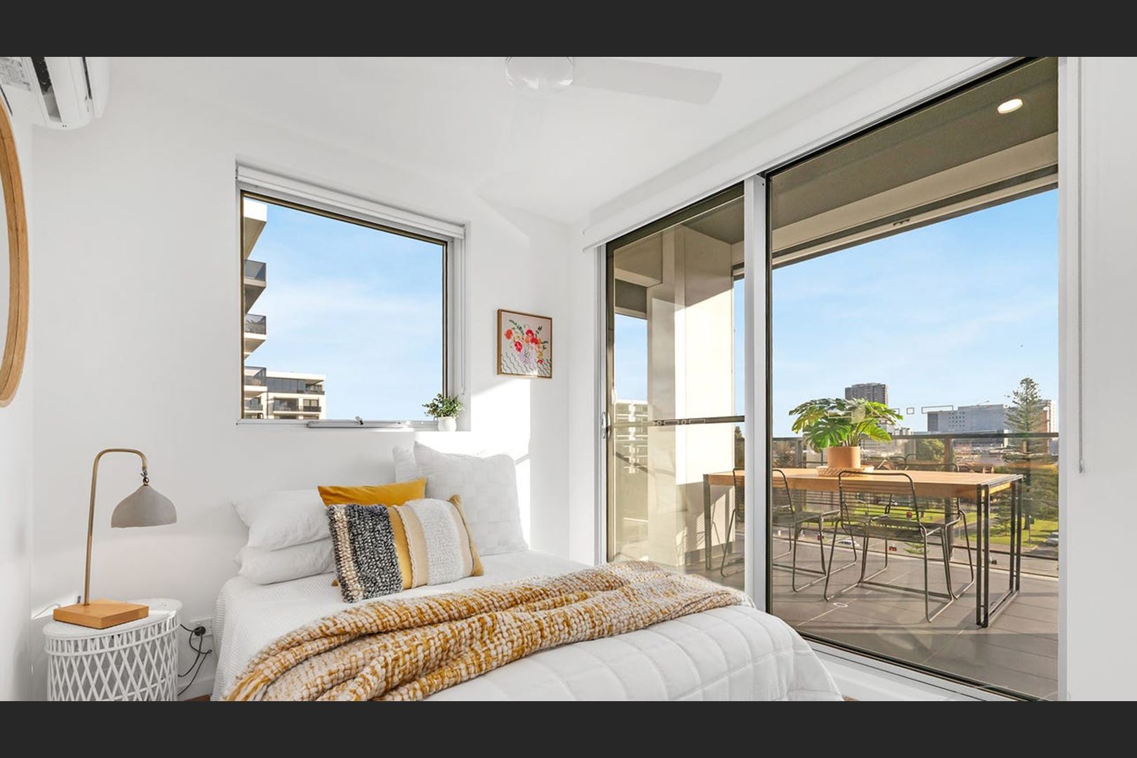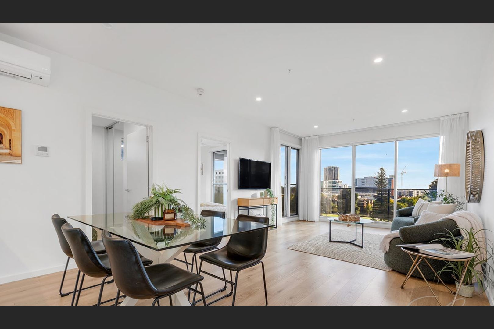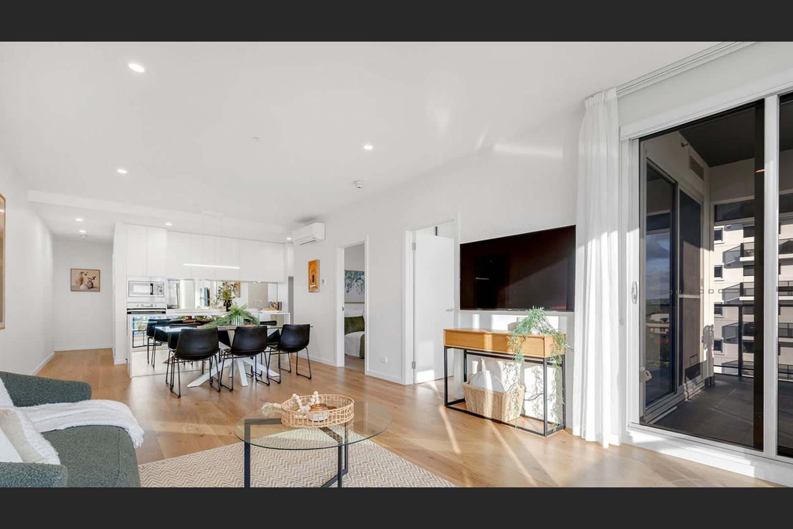 This two-bedroom apartment with a magnificent outlook needs to be seen to be fully appreciated. The living and dining room is open-plan and more spacious than most. The apartment opens up onto the balcony via one of the three sliding doors (2 in the living, 1 in the front bedroom/office). Entertaining out here with family and friends would be absolutely delightful. The energy efficient ceiling to floor windows and doors allow the natural light to flow through this apartment beautifully.