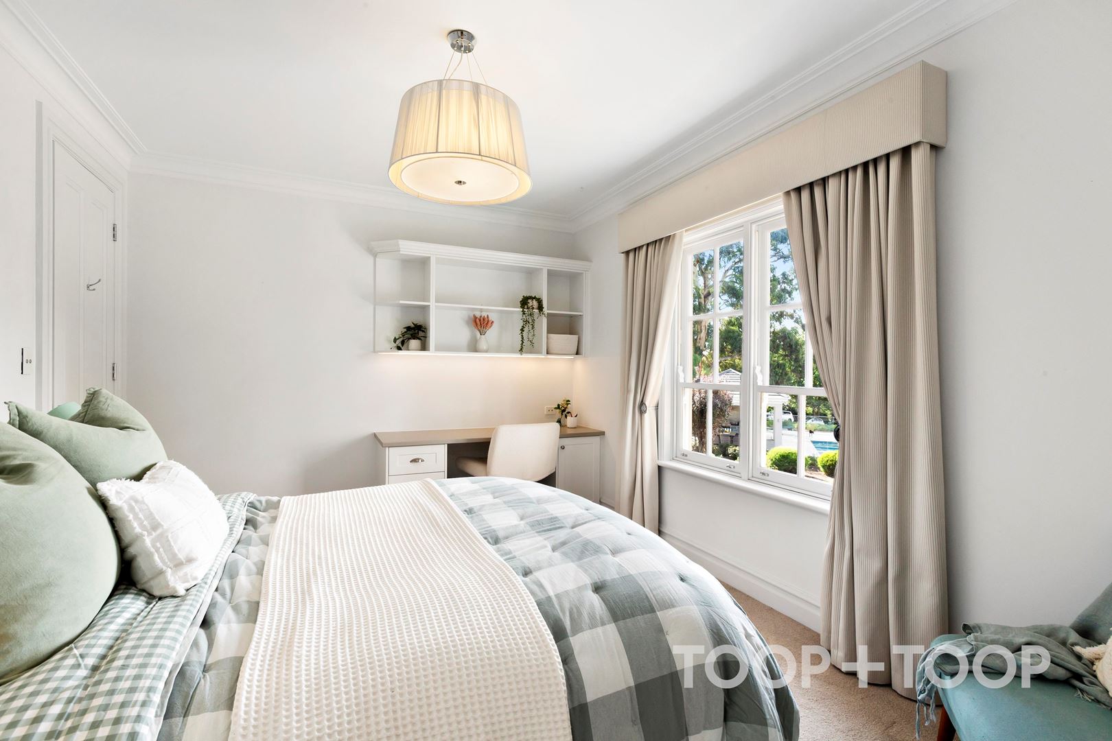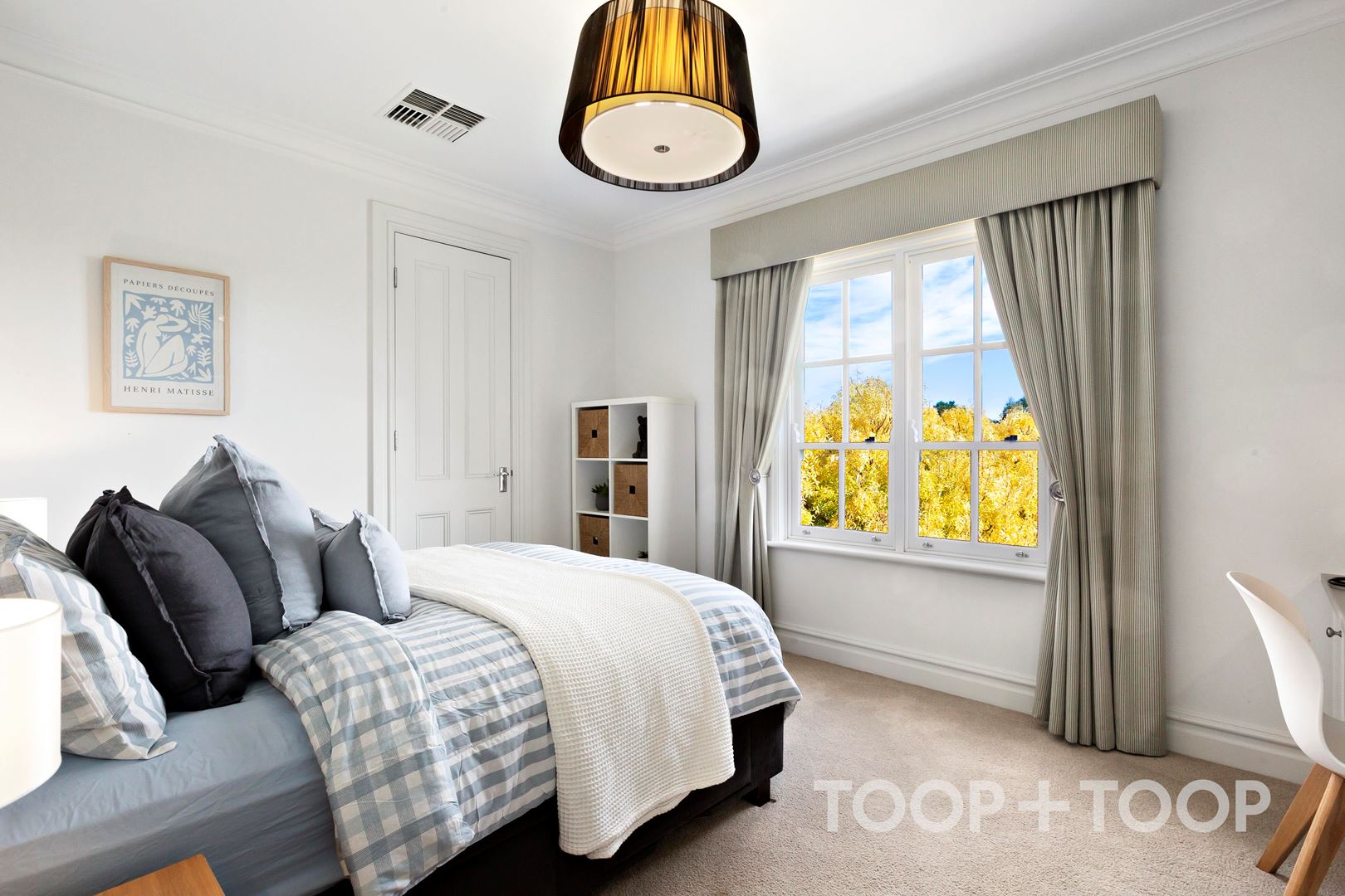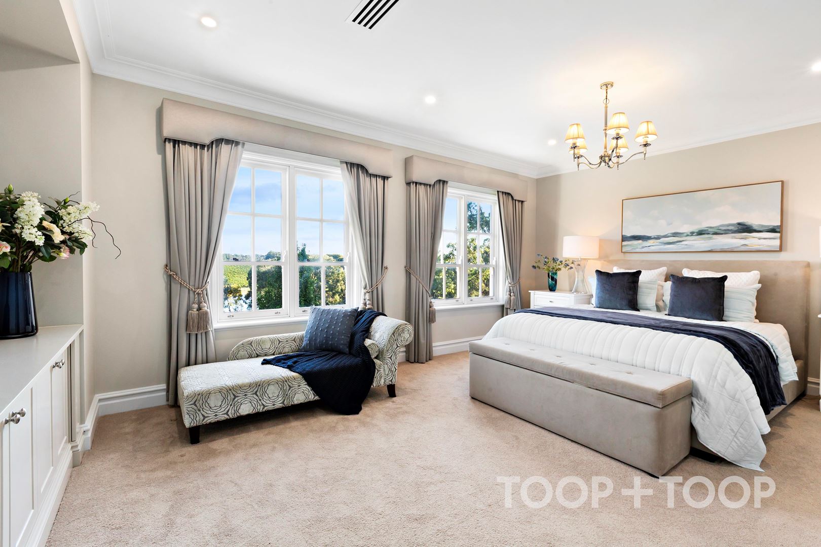 The master suite is a true parents retreat, befitting the exceptional scale and elegance of the home. An award-winning ensuite, complete with a walk-in double shower, a freestanding bath and sweeping views across the vineyards complements a generous walk-in robe with hidden custom ironing nook. It is a space designed for both function and retreat, where the quietly restorative outlook becomes part of the everyday experience.