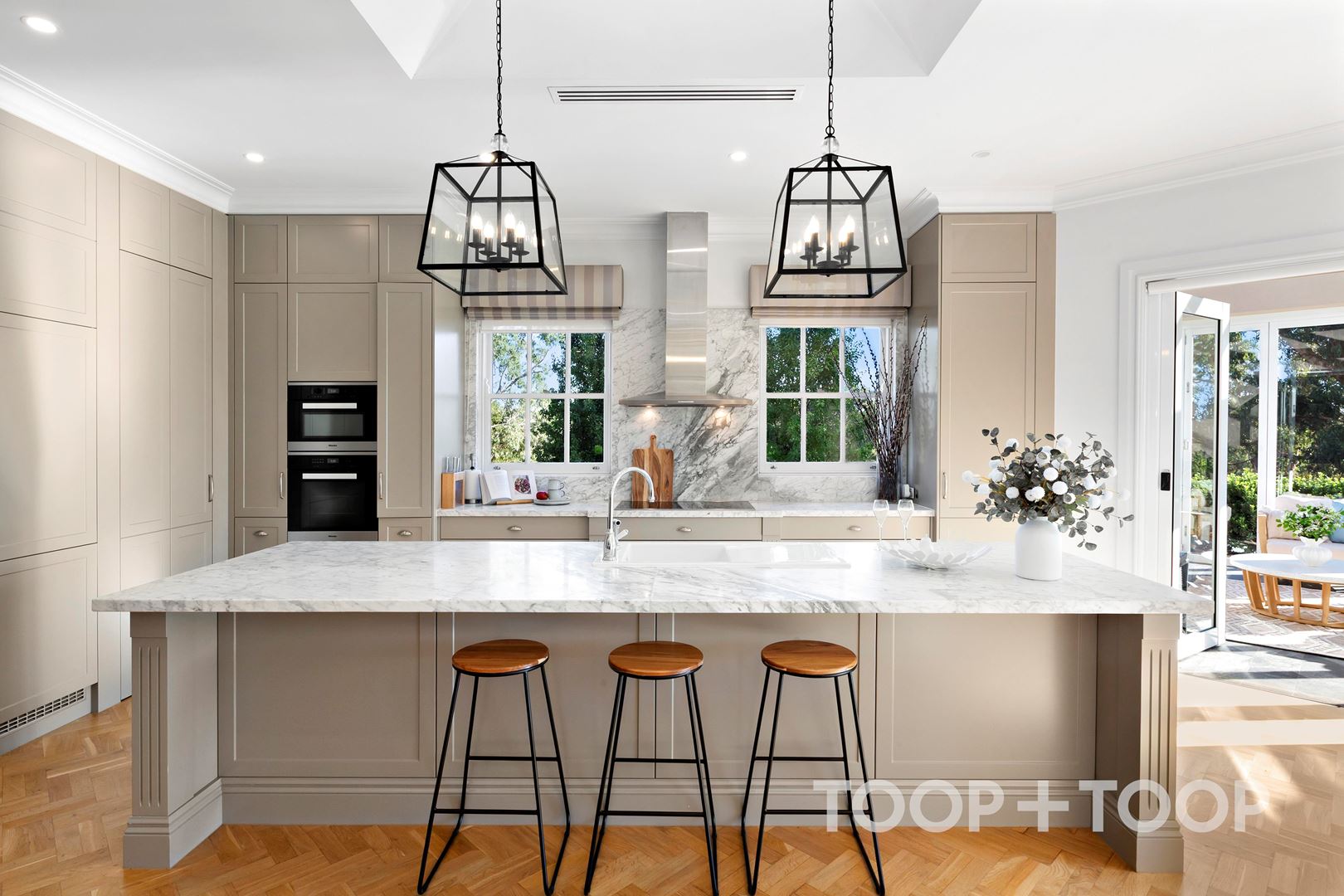 At its heart, the kitchen has been designed to balance function with presentation. It supports the needs of everyday family living with ease, while remaining perfectly equipped to accommodate larger gatherings and celebrations. The adjoining butler’s pantry extends the working space, allowing the main kitchen to remain calm, organised and visually composed.