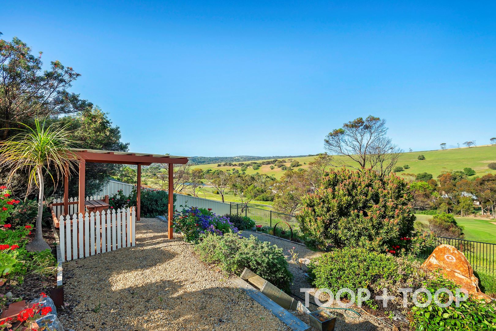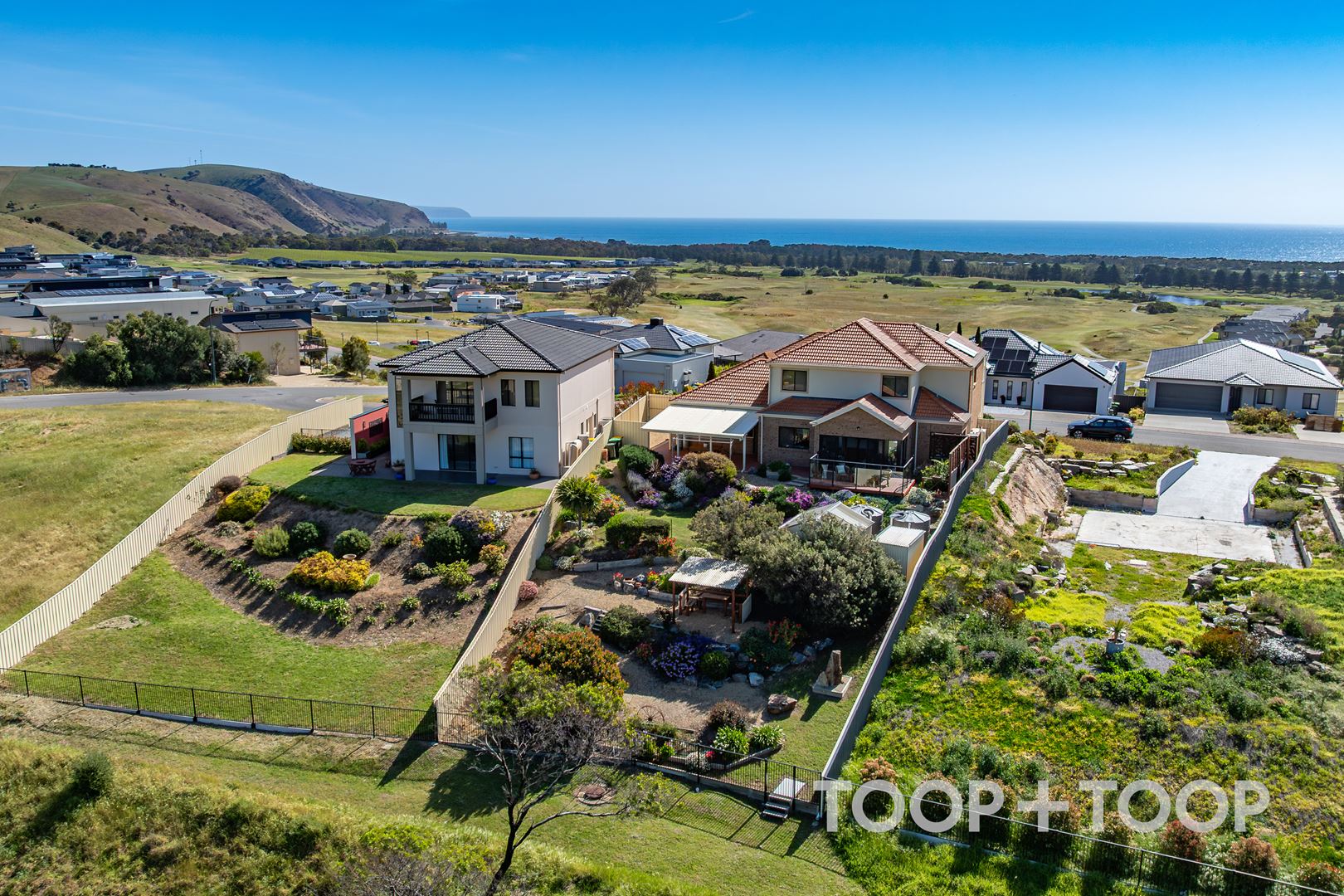Located in arguably the most desirable address in the Lady Bay Resort estate. This unique elevated position ensures fabulous views either to the front or rear of the home, offering endless options. With 5 bedrooms, three living areas, two bathrooms and a powder room, the floorplan will suit family living or retirement alike - with plenty of room for weekend visitors to stay. Built over two spacious levels, offering sunsets and awesome panoramic sea views to the front and sunrises and rolling green pastures to the rear. Either way you'll enjoy views over the lush green fairways of renowned Lady Bay course. The luxurious downstairs master bedroom takes in those sea views and offers a spacious walk-in robe and large ensuite with spa bath. Beautiful Spotted Gum floors make living easy on the lower level while upstairs and all bedrooms are carpeted. The kitchen features granite benchtops and plenty of cupboard space, beautiful views over the stunning garden and to the rolling green farmland beyond. The flexible floorplan allows for a primary bedroom upstairs if desired, with bedroom two also enjoying the coastal vista, access to the balcony, walk-in robe and two way access to the family bathroom. A further three bedrooms upstairs, two with built in robes and another makes a great study with ocean views and access to the balcony. Two car garaging with convenient, secure and direct access into the home. Pergola and deck to the rear. Garden sheds, rainwater tanks, fully fenced and landscaped. A stunning, established garden full of colour is a delightful place to sit and enjoy a cuppa and watch the kangaroos (or the golfers) on the course conveniently located and accessed via a gate at the bottom of the garden. A handy off-street park by the side of the house can accommodate a boat or trailer securely behind the gate. Discover the beauty of this thriving coastal hub offering a fantastic lifestyle. Whether it be golf, fishing, boating or just enjoying the greater region and all it offers, Normanville is the perfect beachside base. Mains water Ducted RC air-conditioning