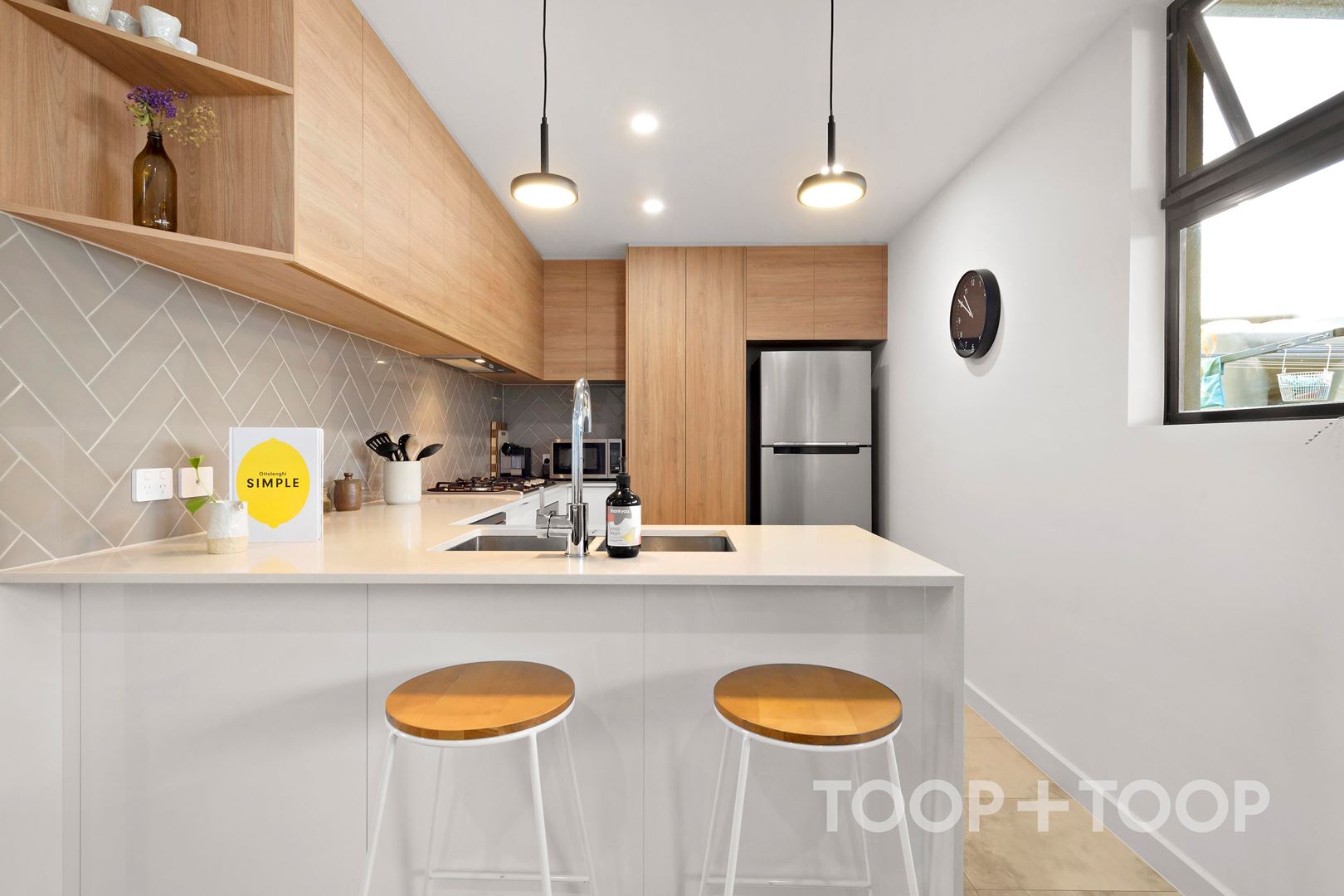 Whether you love to cook or you prefer take-out/UberEATS, one thing's for sure; you will love this kitchen! A heavenly contrast between timber and crisp white cabinets, topped with stone and finished with quality stainless-steel appliances.. you don't need to be a chef to appreciate the aesthetics of this gorgeous space.