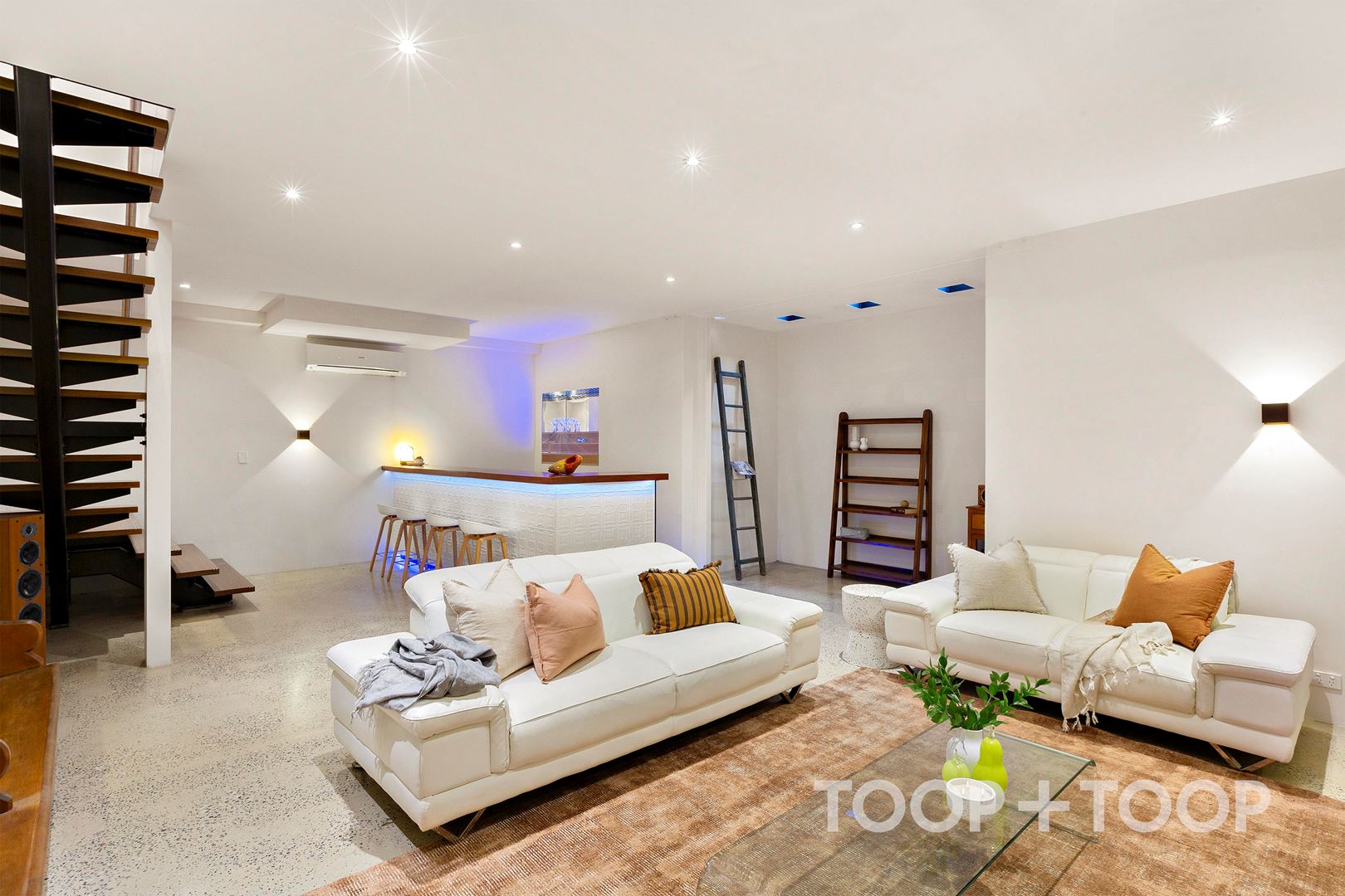 The incredible downstairs entertainment zone is a standout, featuring a bespoke Jarrah timber bar with pressed metal features and mood lighting throughout.