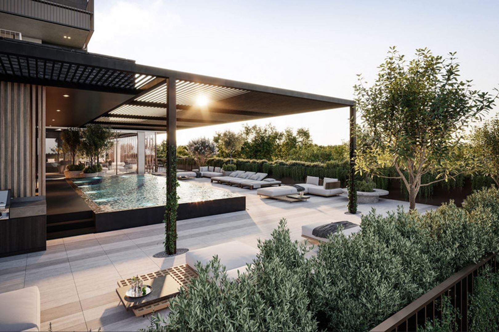 • Elevated garden terrace with entertainment zones and outdoor culinary spaces designed for social gatherings and peaceful retreat