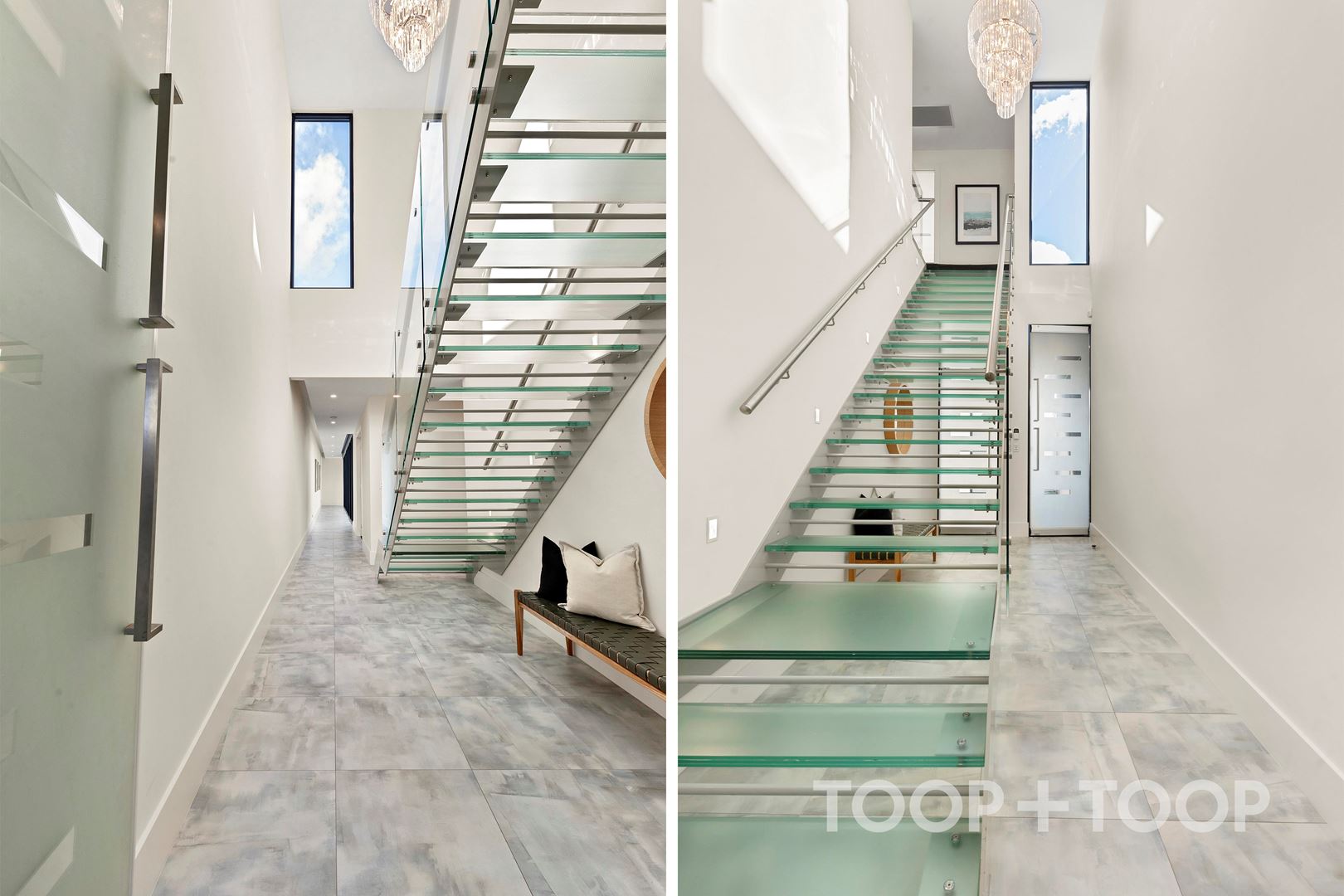 The spacious free-flowing floorplan is defined by stunning design features from the imposing glass staircase in the entrance hall, luxurious master suite on the ground floor, and the sparkling swimming pool with spa which is centrally located to provide soothing views from virtually every aspect of the home.