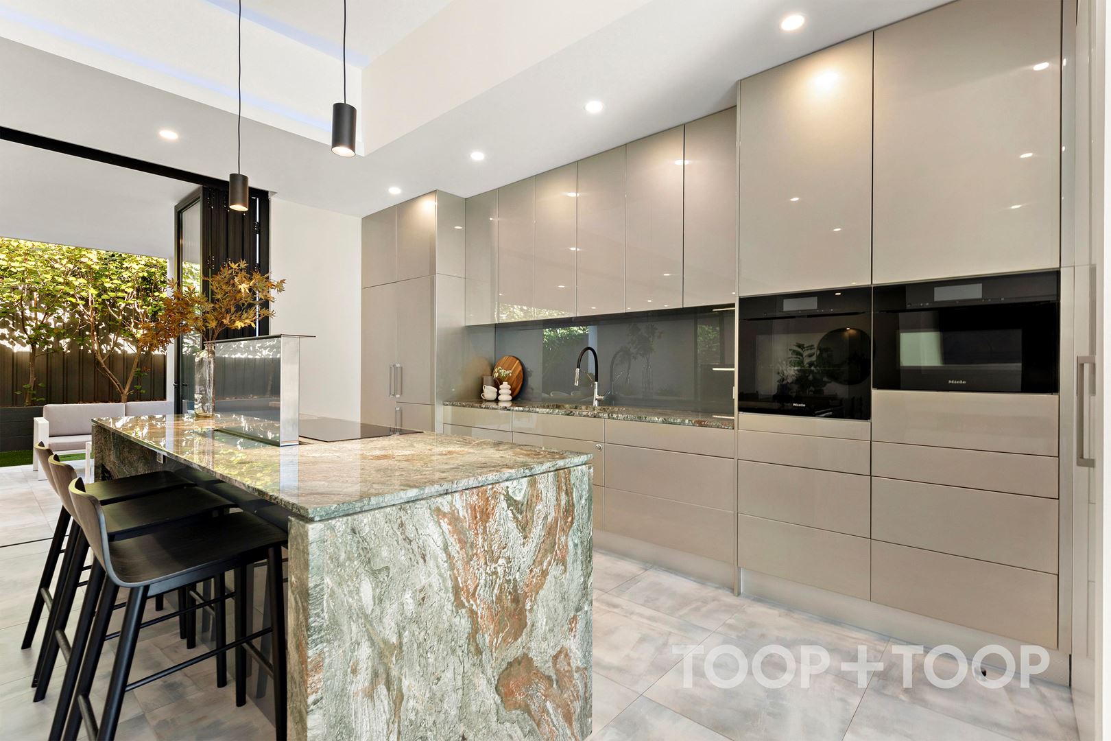 + Luxurious gloss kitchen with premium Miele appliances including downdraft rangehood, pyrolytic oven and rich granite benchtop