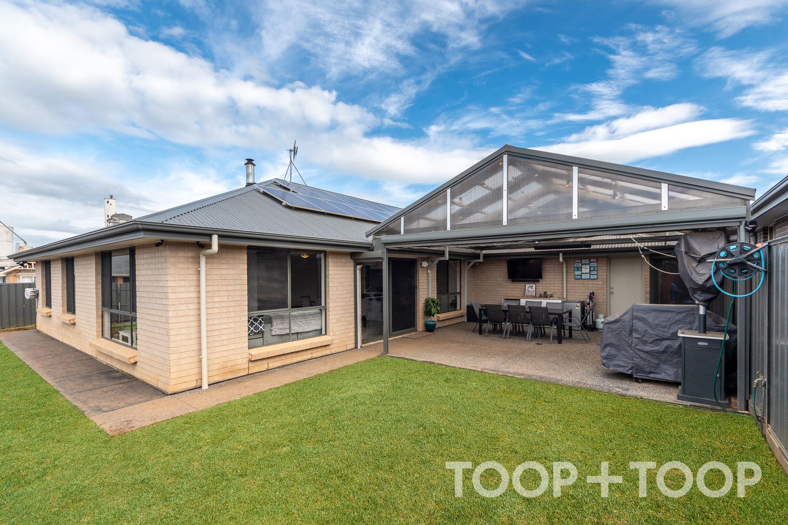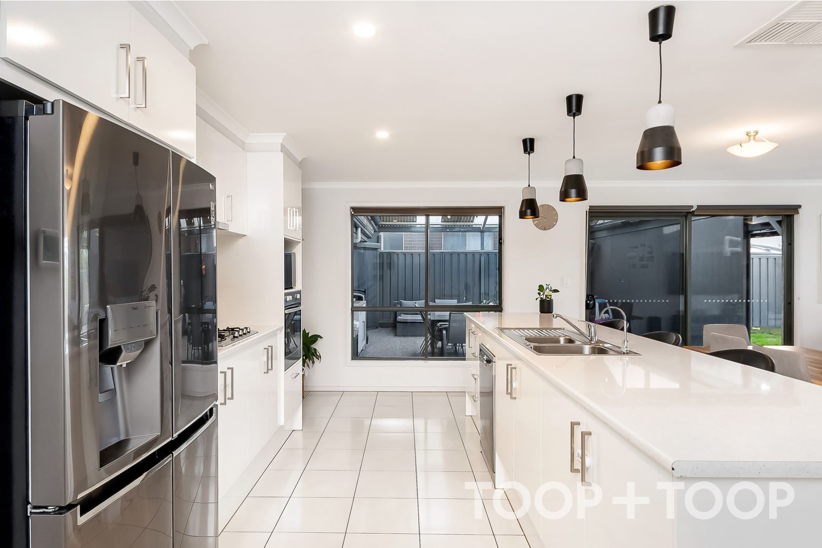 * Four spacious bedrooms with built in robes in bedrooms 1,2 & 3 * Master bedroom with walk-in wardrobe and ensuite with double vanity * Front lounge room with garden view * Large open plan living and dining room * Large main bathroom with shower and bath * Modern kitchen with stone bench tops, dishwasher and gas cooking * Breakfast bar, pantry and plenty of storage. * Tiled throughout the living, kitchen and hallways * Ducted heating and cooling throughout * Outdoor entertaining area with pergola & TV * 11.6kW Solar System * Low maintenance front yard * Double Garage with remote access