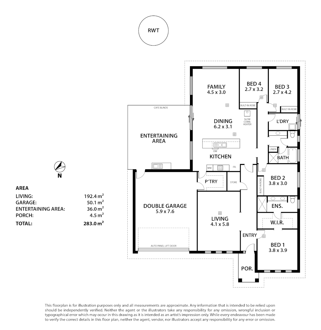 All four bedrooms are generously sized and offer built in robes, and plenty of space to unwind after a busy day. The house also comes with an ensuite for the master bedroom and a large main bathroom both featuring a modern designs and finishes.
