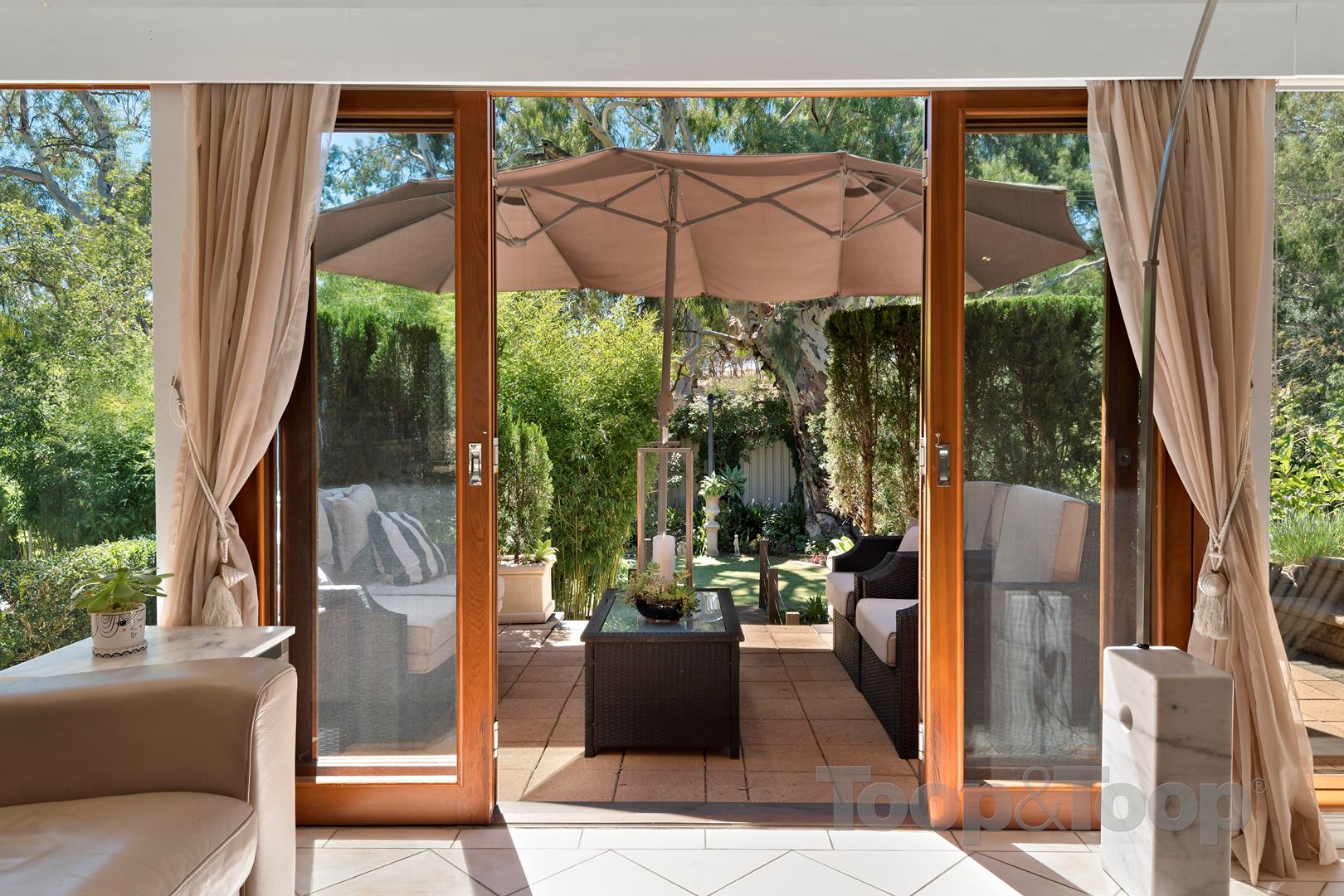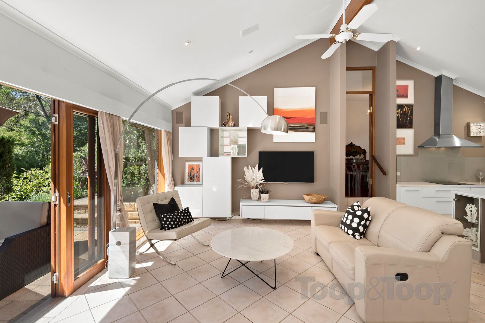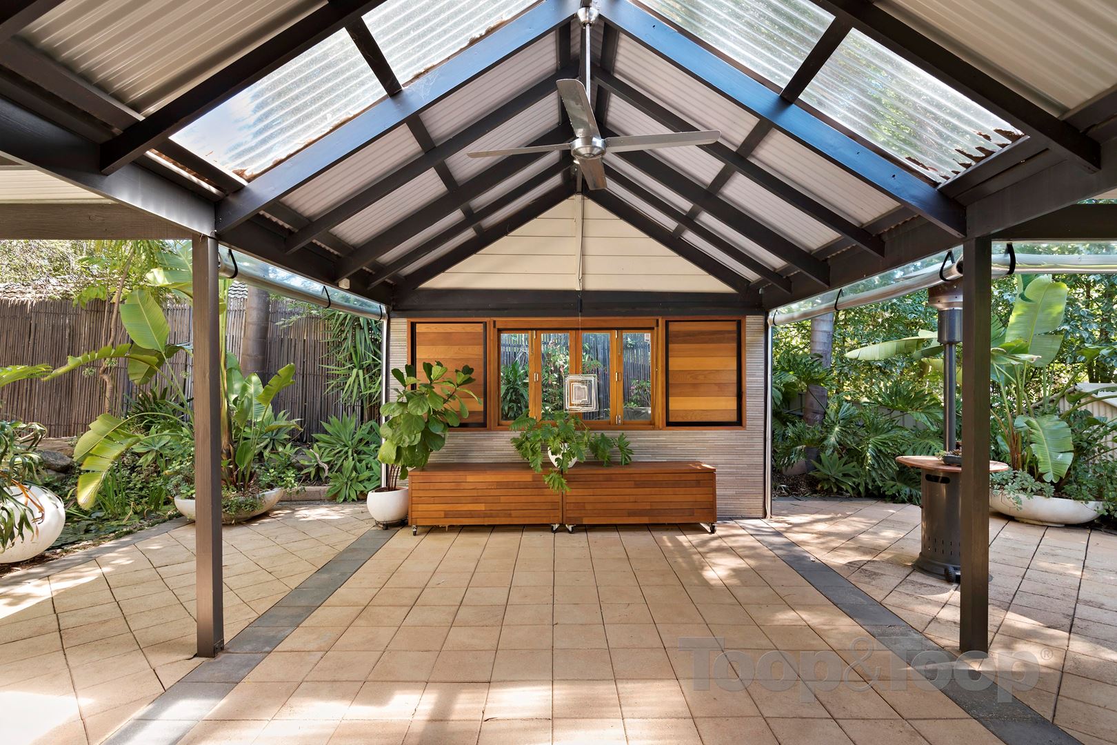 Ceiling fans in the living and outdoor entertaining areas.