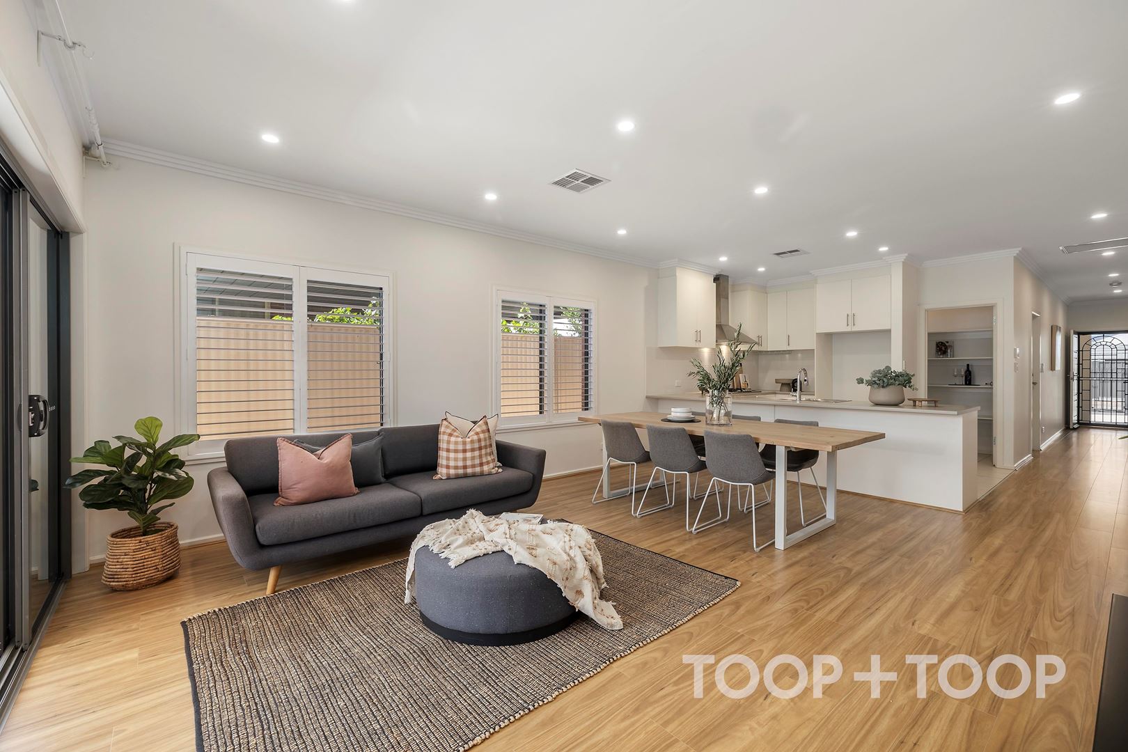 Overlooking a generously scaled open-plan living area, The low-maintenance rear garden beckons serenity, providing ample space for children and pets. For those desiring a serene retreat, the property is strategically situated on the same street as the picturesque Payneham Oval, a mere 200 meters away.