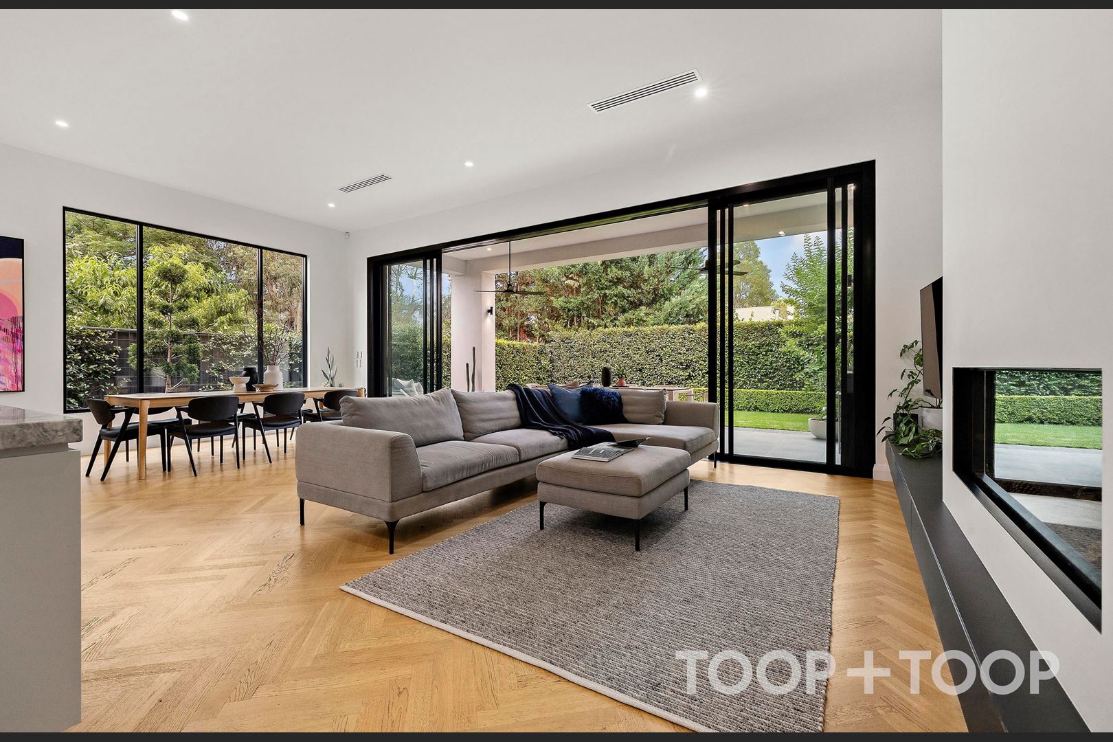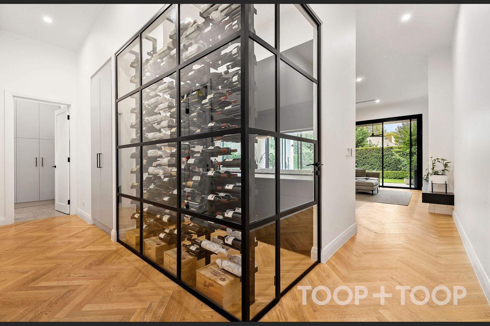 Bathed in northerly sunshine with garden views, expansive open plan living is introduced by a wow-factor steel framed wine room.