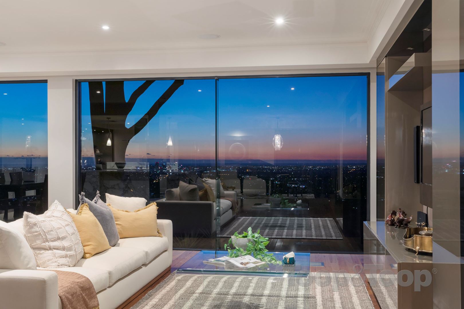 Boasting breathtaking views across the Adelaide skyline to Gulf St Vincent, this spectacular custom residence shines as a sparkling gem in the exclusive foothill suburb of Auldana.