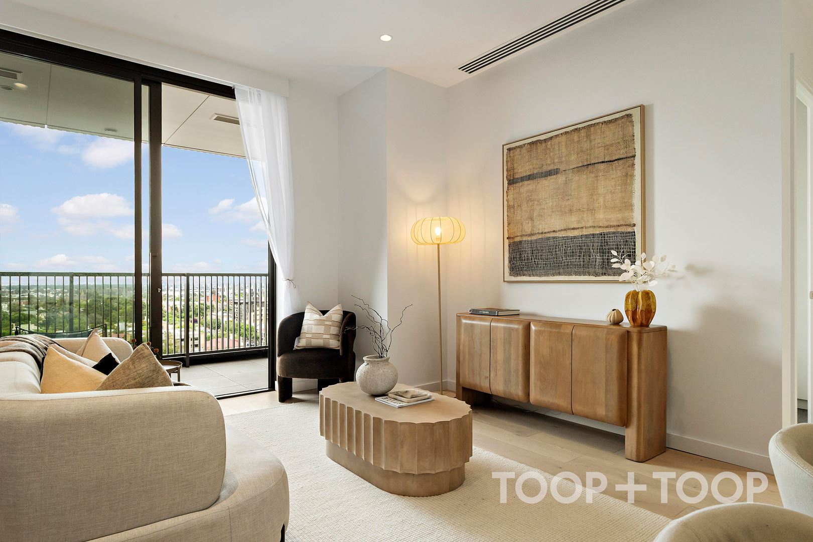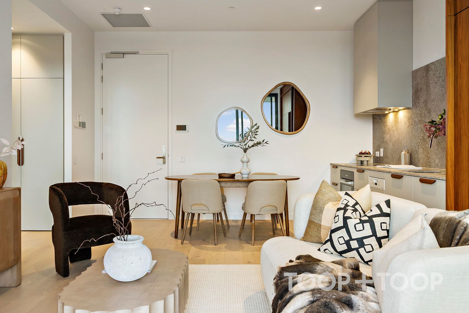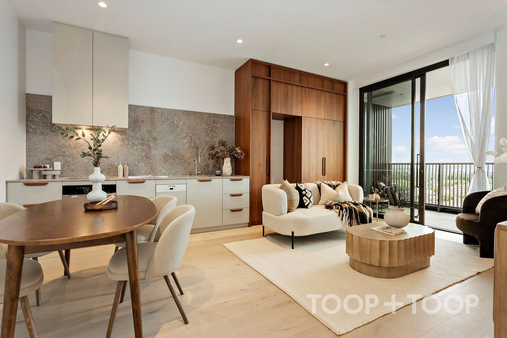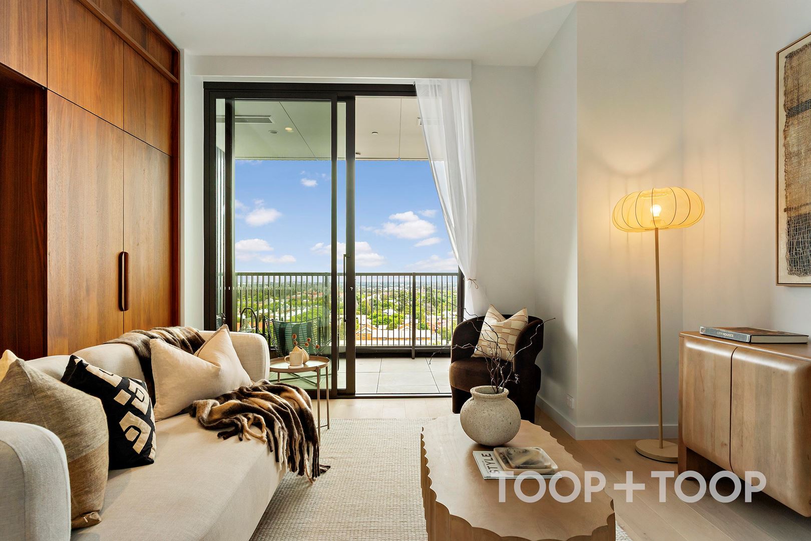 Envisage your easy lifestyle in this brand new one bedroom apartment, poised on a high level with 180 degree panoramic views of the Adelaide skyline, just footsteps from every conceivable service.